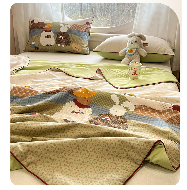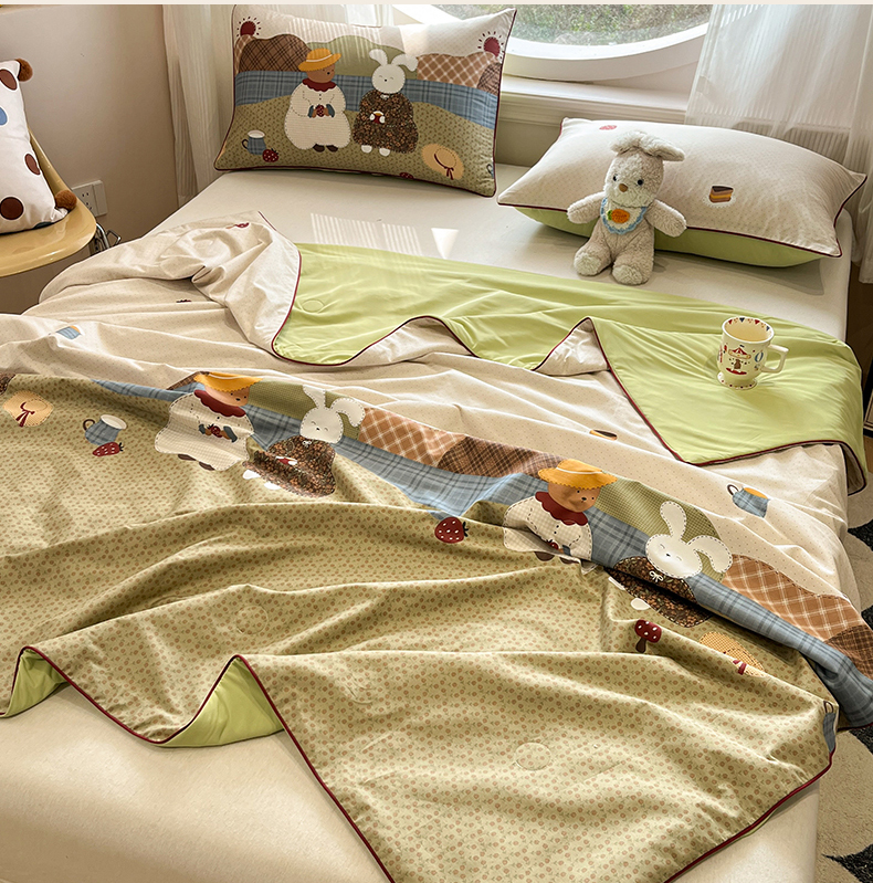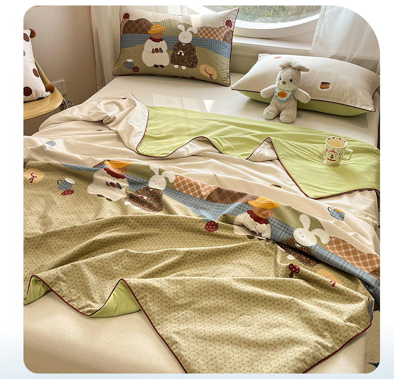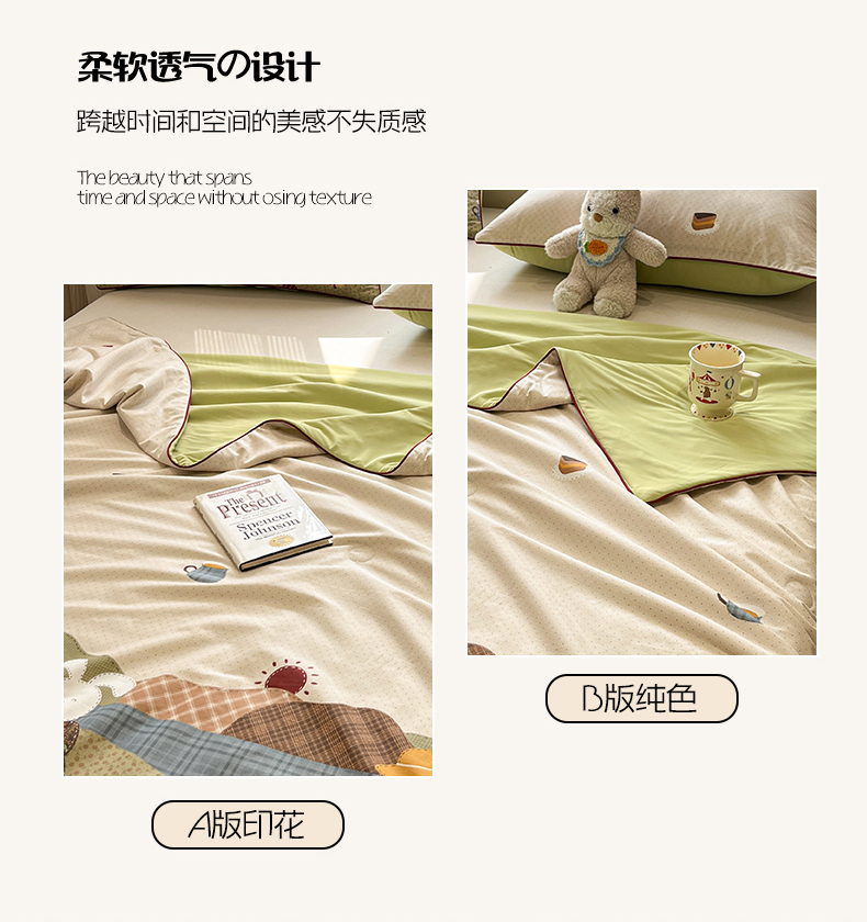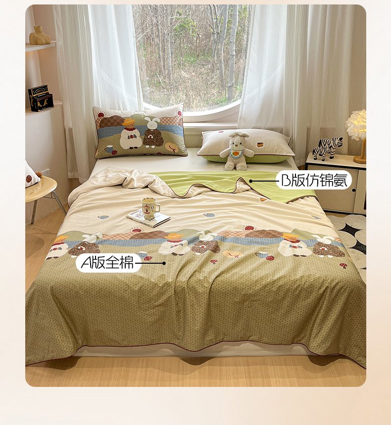 商品名称:(总)羚羊语家纺 2026新款全棉印花仿锦氨凉感丝夏被100纯棉空调被卡通两用多功能被子被芯小冰皮冰淇淋夏凉被
