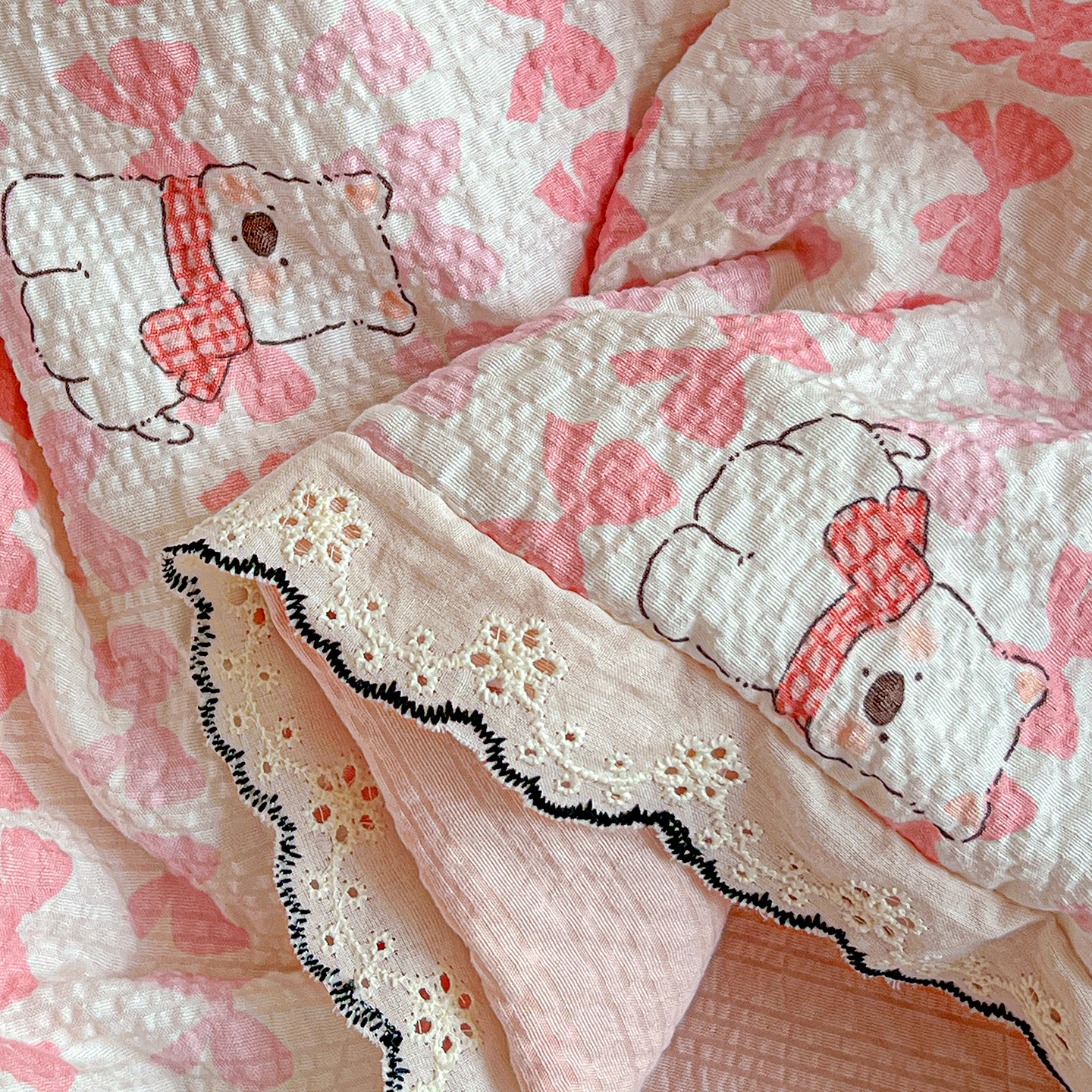 (总)仟网汇 2026新款法式花边泡芙纱夏被四件套,春日小花,春日小兔,蛋糕熊,道格先生,费尔岛,红波点,红樱桃,蝴蝶谷,花枝兔,欢乐时光,浪漫满屋,马到成功,萌趣熊,梦宝贝 - 红,梦宝贝 - 黄,奶霜啵啵,南瓜象,青禾,甜心KT,晚安星人,小矮人,小红马,幸运汪,熊贝贝,悦己,紫花兔兔