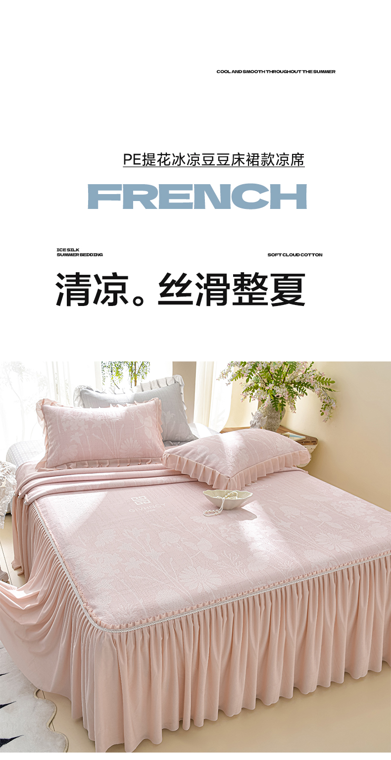 商品名称:(总)绘萱家居 2026新款PE提花冰凉豆豆床裙款凉席席子凉席
