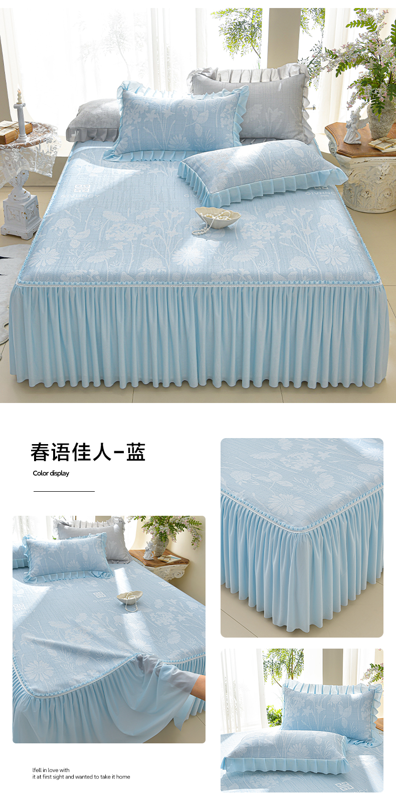 (总)绘萱家居 2026爆款冰凉豆豆凉席三件套床裙款冰丝软席子,叶影漫纱-绿,冰凉豆豆-粉,冰凉豆豆-灰,冰凉豆豆-蓝,冰凉豆豆-绿,叶影漫纱-粉,叶影漫纱-灰,叶影漫纱-蓝