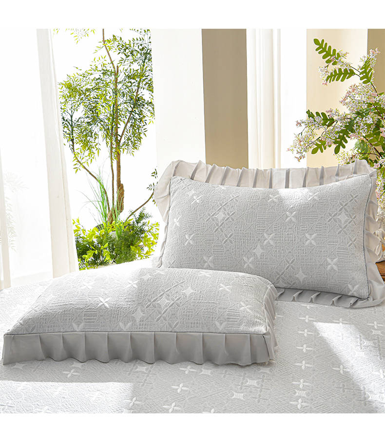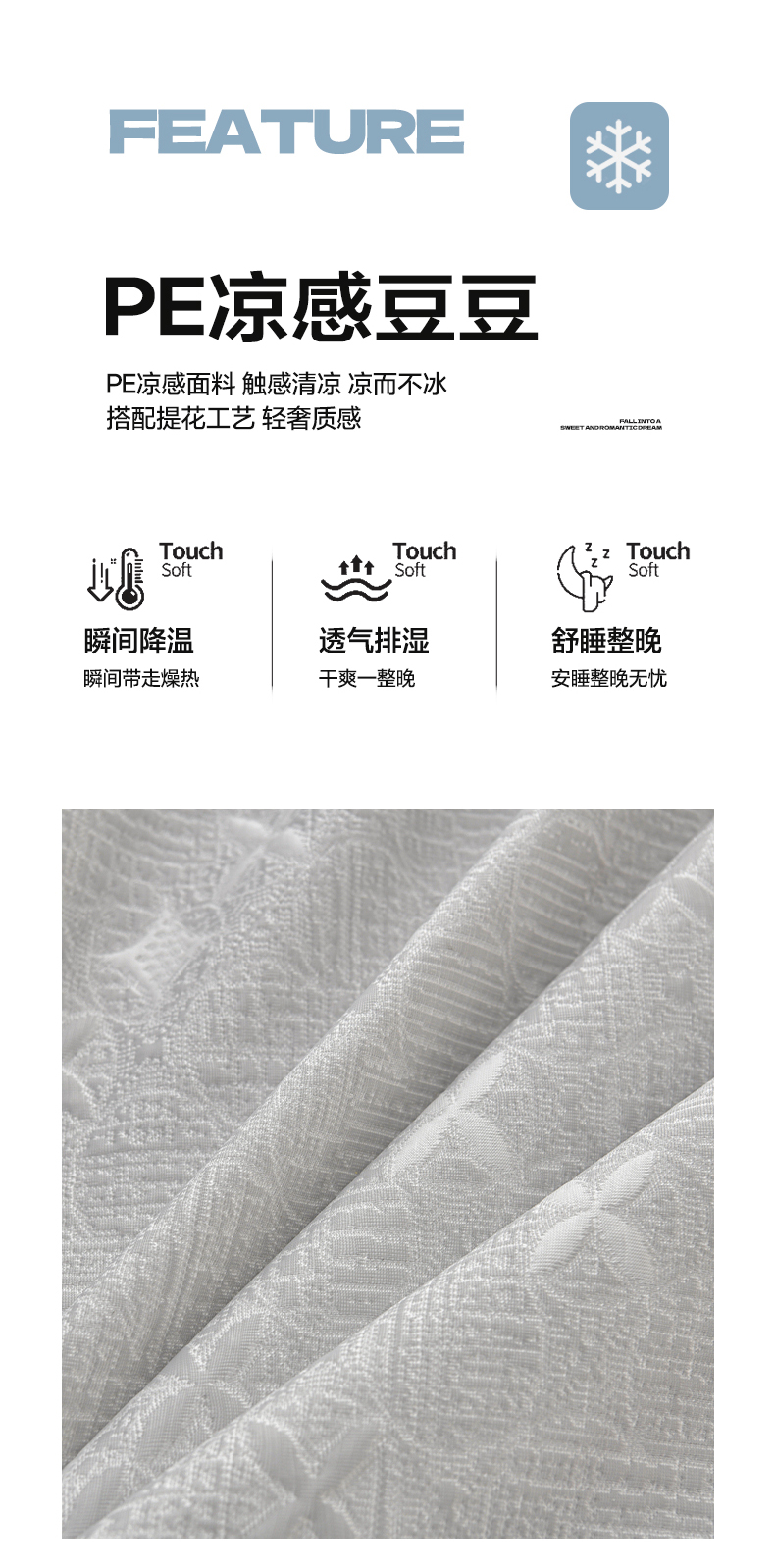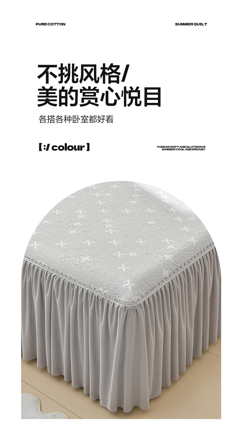商品名称:绘萱家居 2026新款PE提花冰凉豆豆床裙款凉席席子凉席 星愿-灰