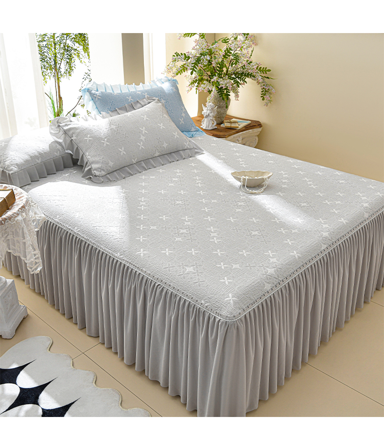 绘萱家居 2026新款PE提花冰凉豆豆床裙款凉席席子凉席 星愿-灰