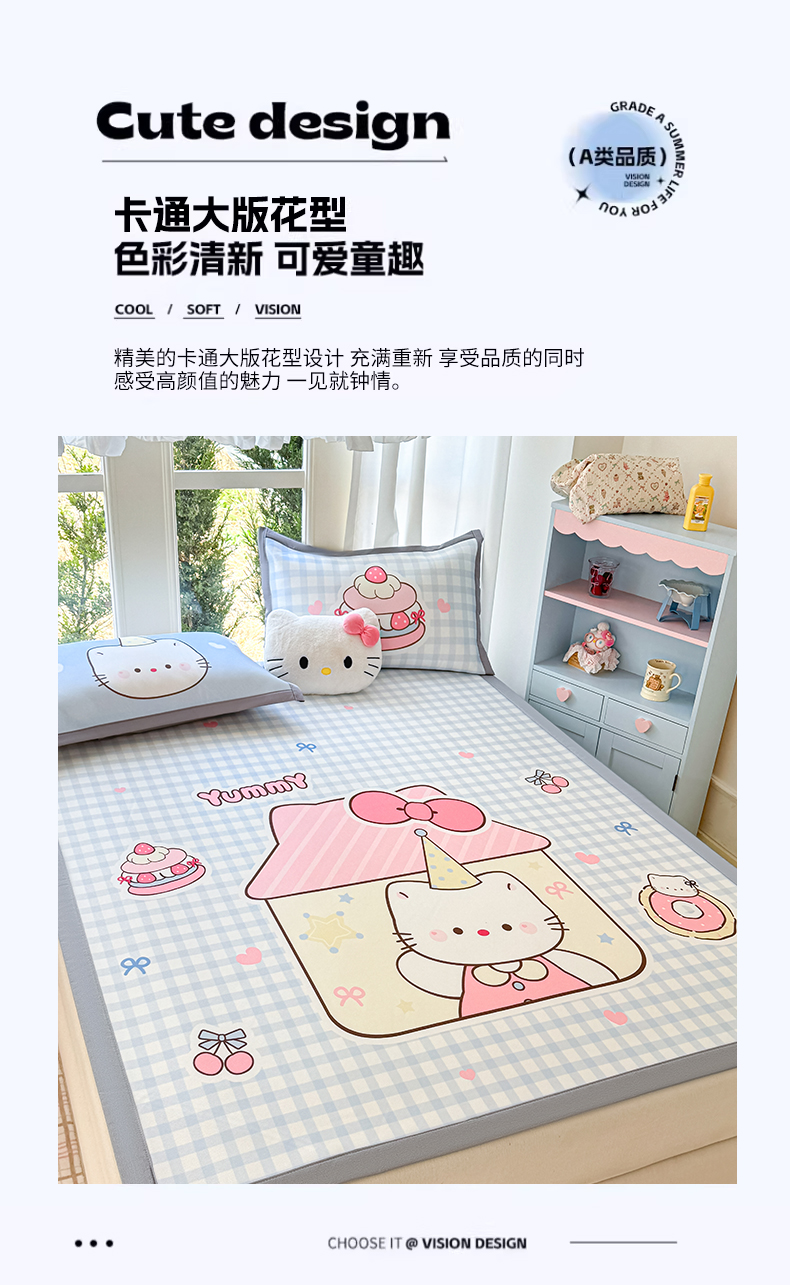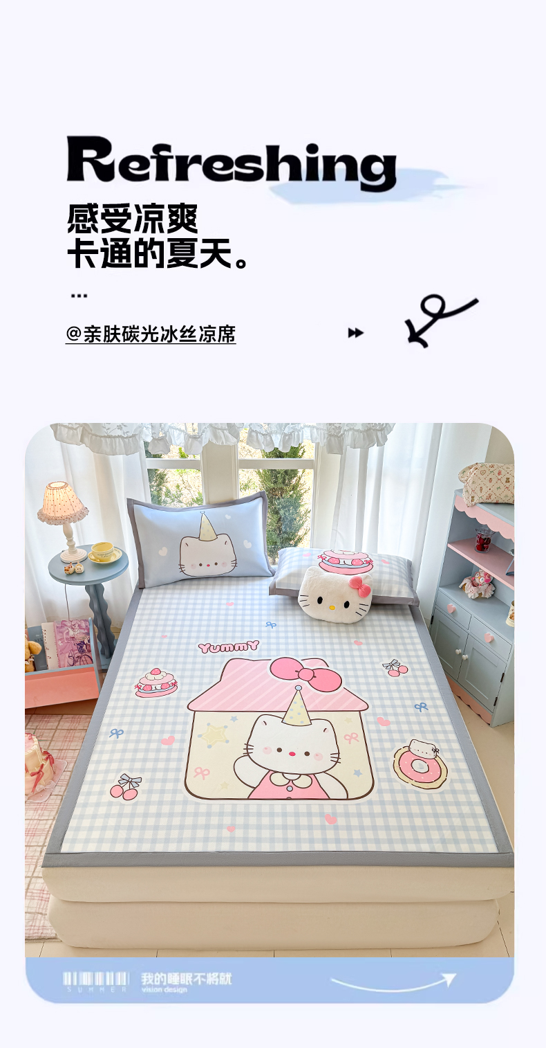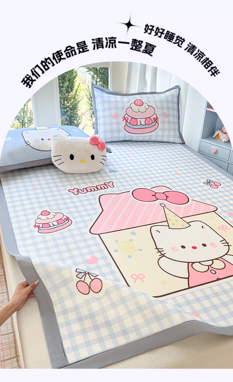 商品名称:川悦生活 2026新款碳光冰丝大阪卡通凉席 小喵屋