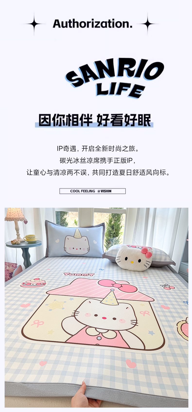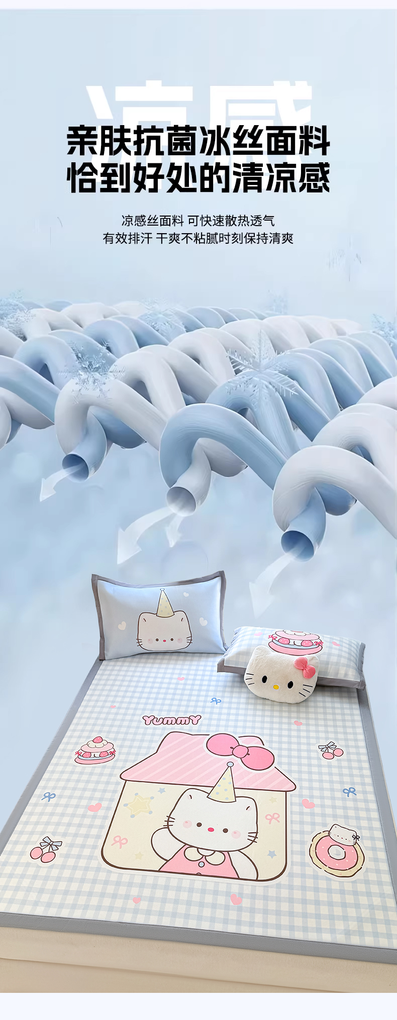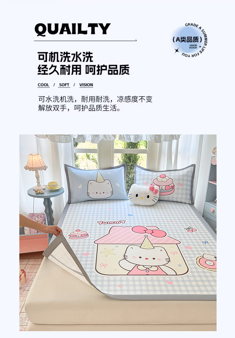 商品名称:川悦生活 2026新款碳光冰丝大阪卡通凉席 小喵屋