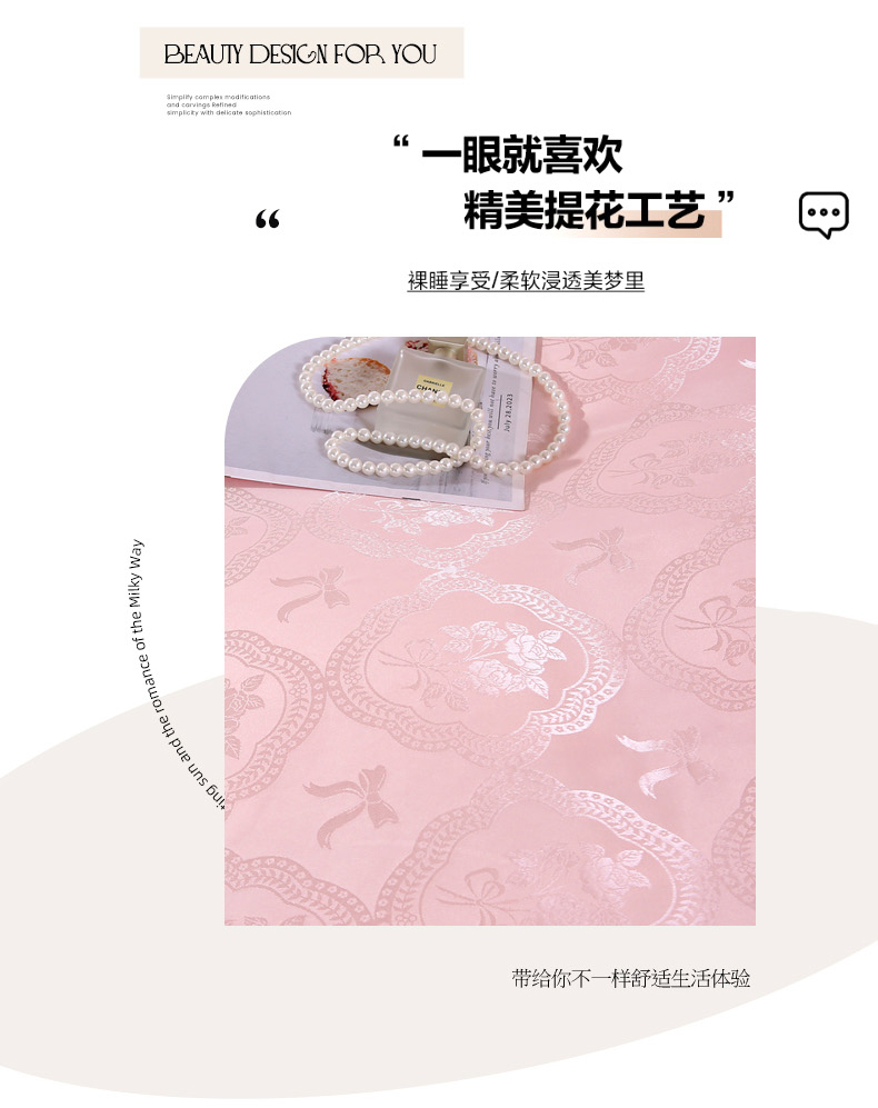 商品名称:(总)提花大世界 2026新款轻奢法式蕾丝花边款丝滑水洗真丝天丝提花床单床笠床盖四件套