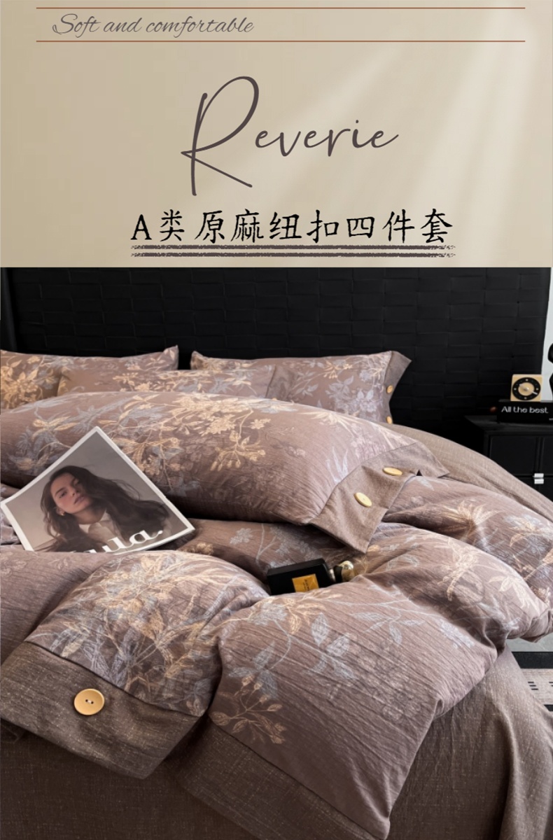 当前位置: 91家纺网 > 商品网购 > 床品套件 > 四件套 > 其它四件套 > 梦舒羽 2026春夏新款A类原麻纽扣四件套加厚被套床单宿舍双人床仿亚麻套件-最新款 金枝玉叶