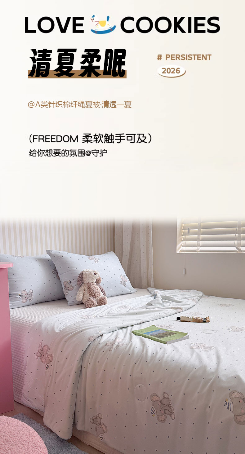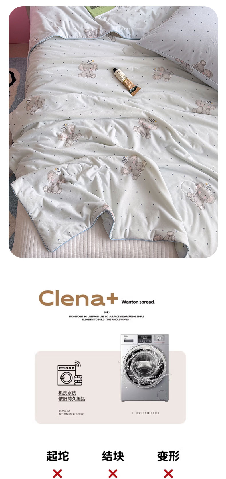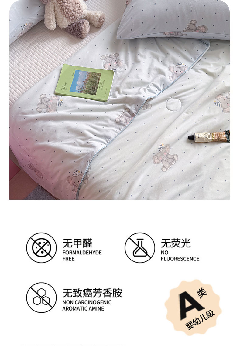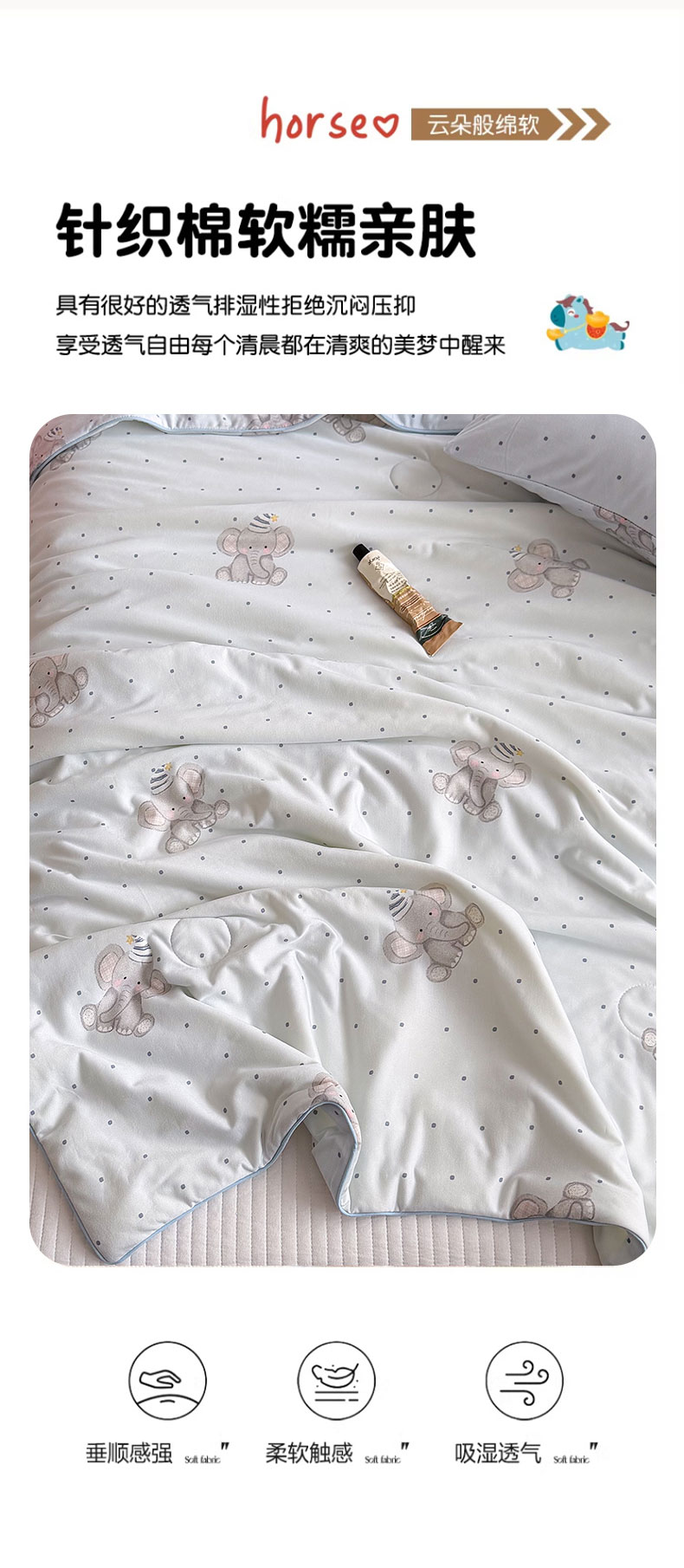 被子 > 夏被 > 桃子家居 2026新款A类卡通小清新奶乎乎高品质牛奶丝软糯针织棉嵌绳工艺夏被系列 针织嵌绳-奶雾小象
