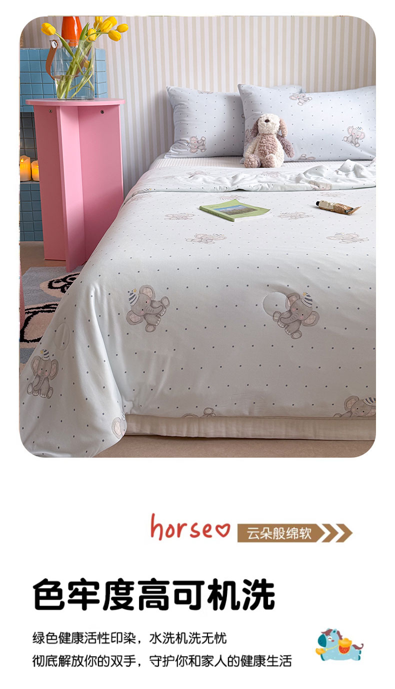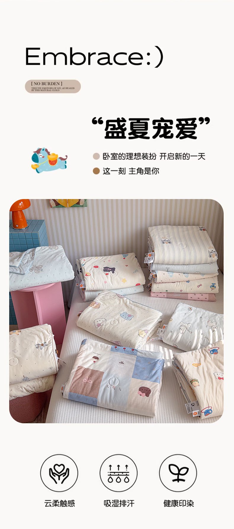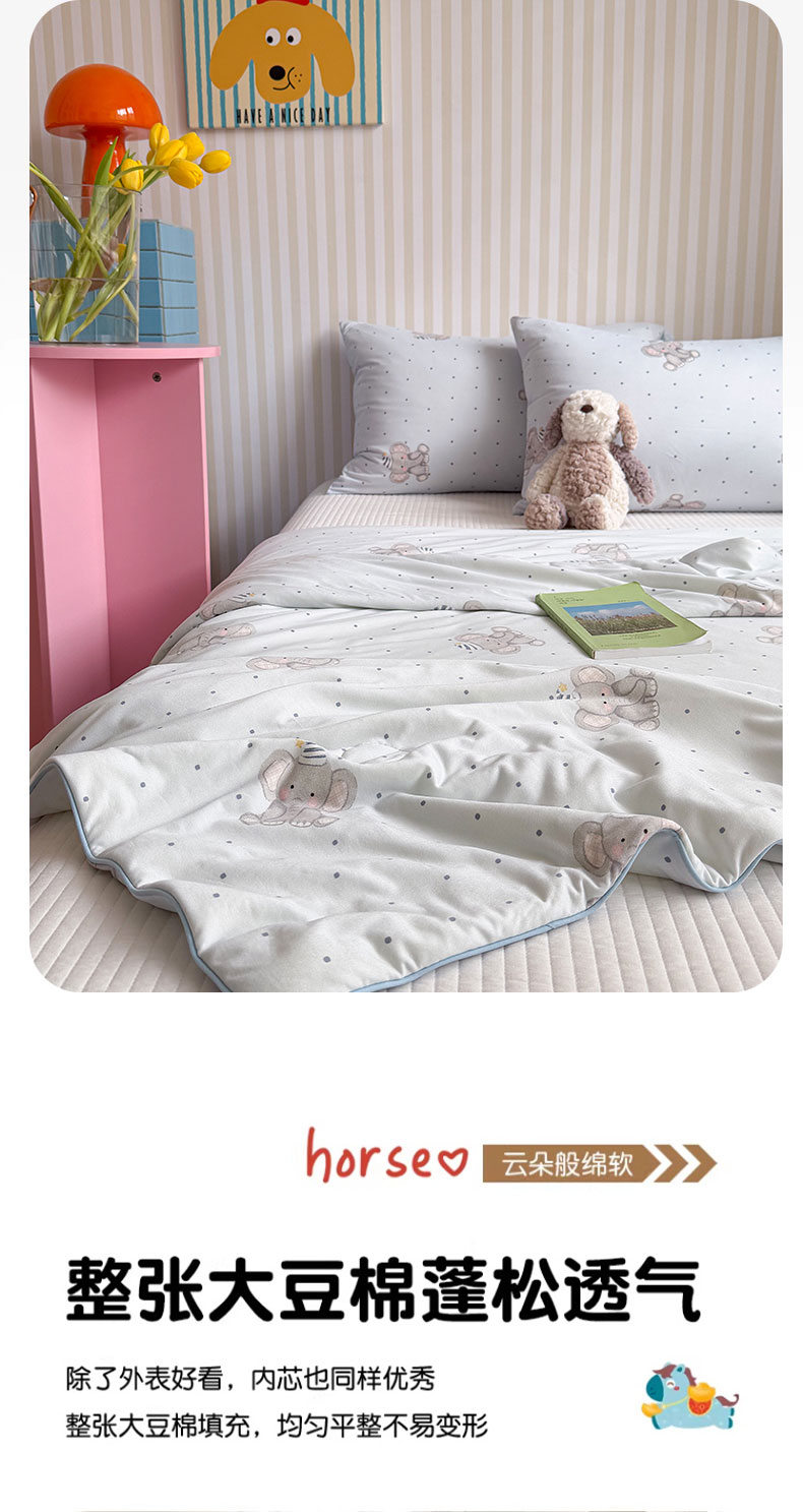 被子 > 夏被 > 桃子家居 2026新款A类卡通小清新奶乎乎高品质牛奶丝软糯针织棉嵌绳工艺夏被系列 针织嵌绳-奶雾小象