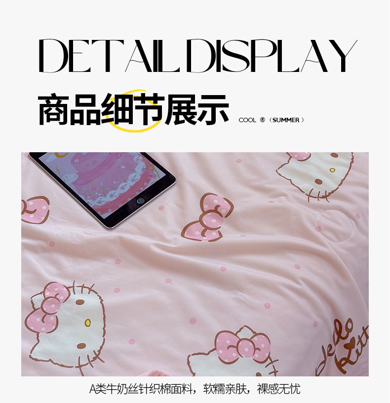 当前位置: 91家纺网 > 商品网购 > 被子 > 夏被 > 桃子家居 2026新款A类三丽鸥高品质可组合凉感丝乳胶席牛奶丝针织棉软糯夏被四件套 三丽鸥夏凉-爱心美少女KT