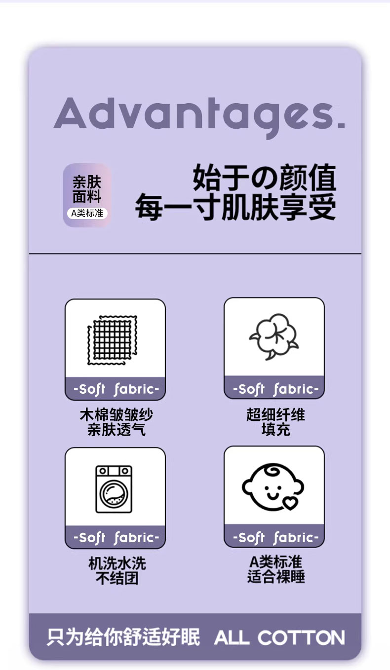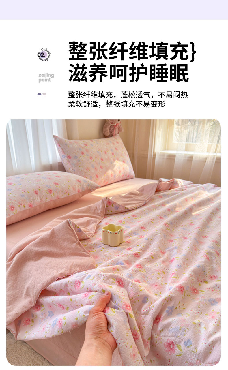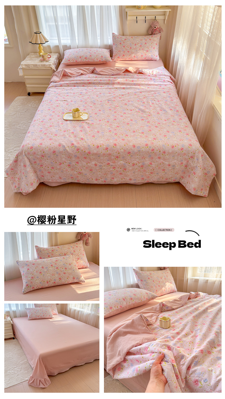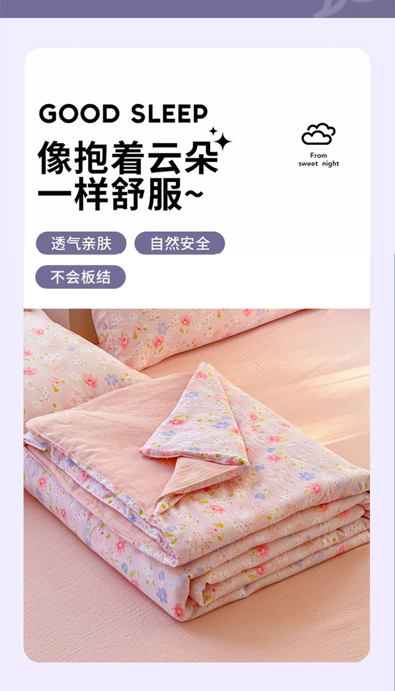 当前位置: 91家纺网 > 商品网购 > 床品套件 > 四件套 > 夏被四件套 > 梵希雅 2026新款A类木棉皱皱纱夏被 樱粉星野