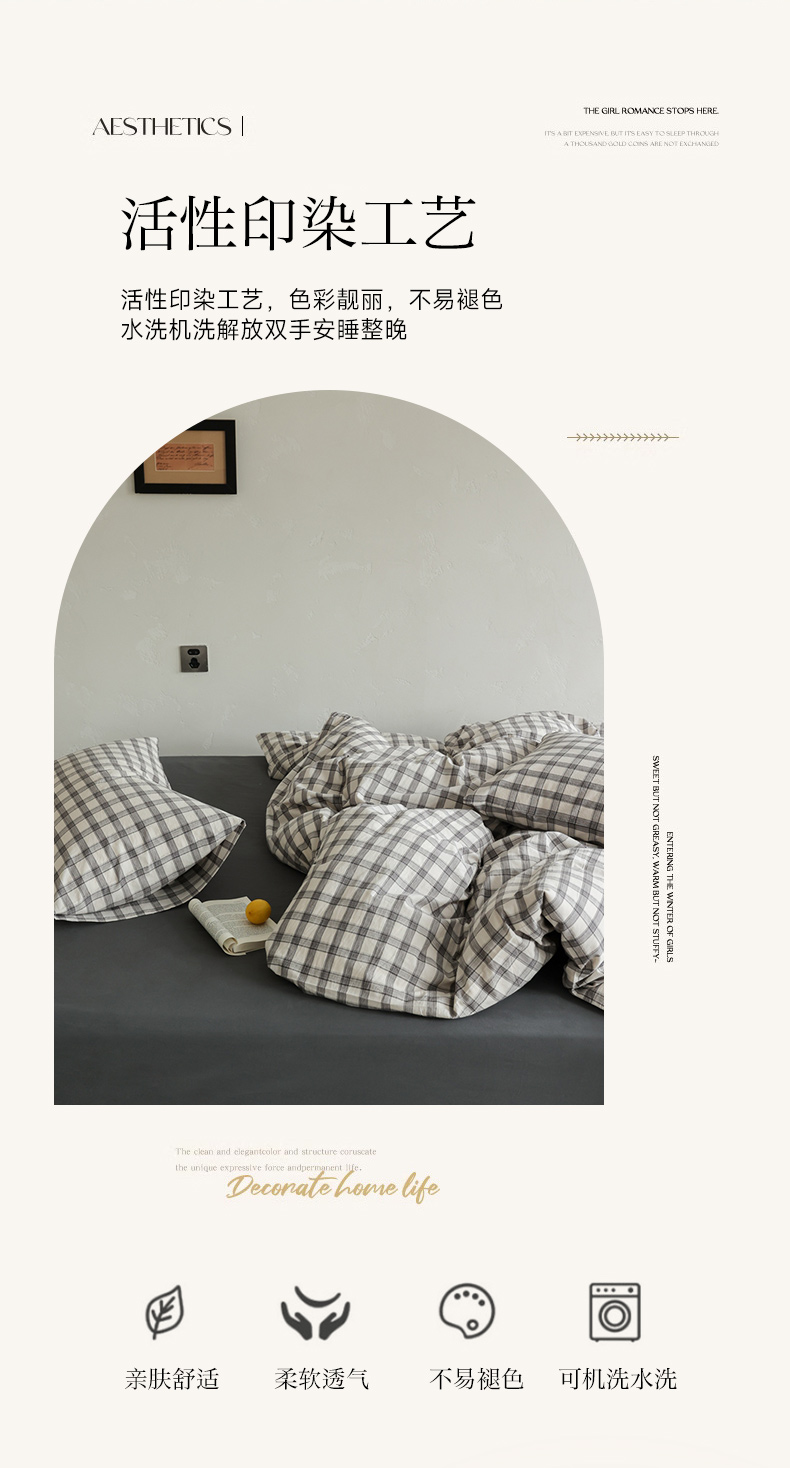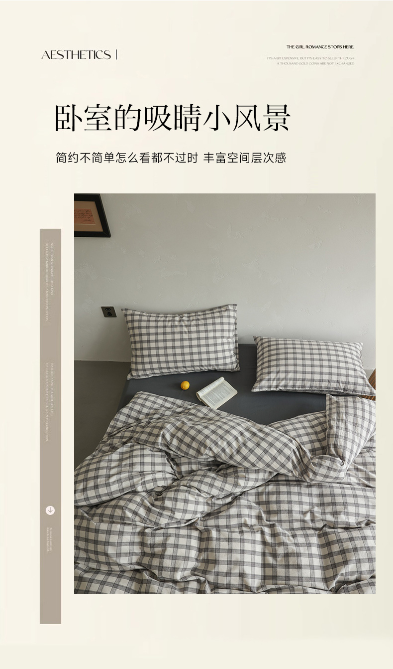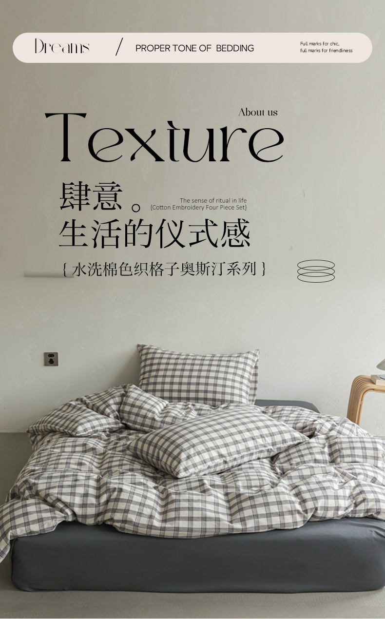 当前位置: 91家纺网 > 商品网购 > 床品套件 > 四件套 > 全棉普通四件套 > 棉眠 2026新款全棉纯棉水洗棉色织格子四件套-奥斯汀系列 奥斯汀-黑白灰