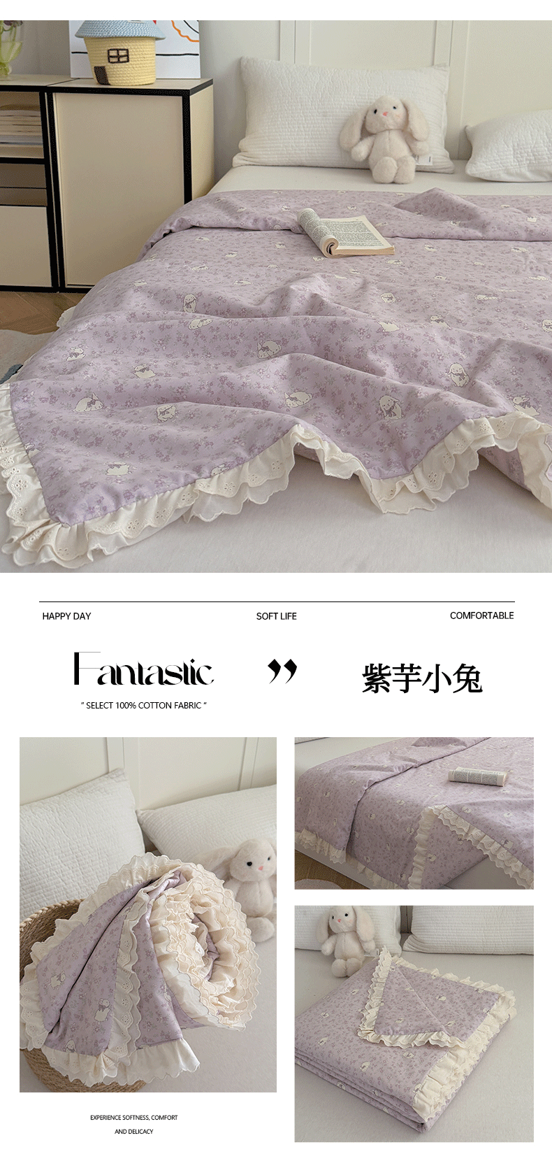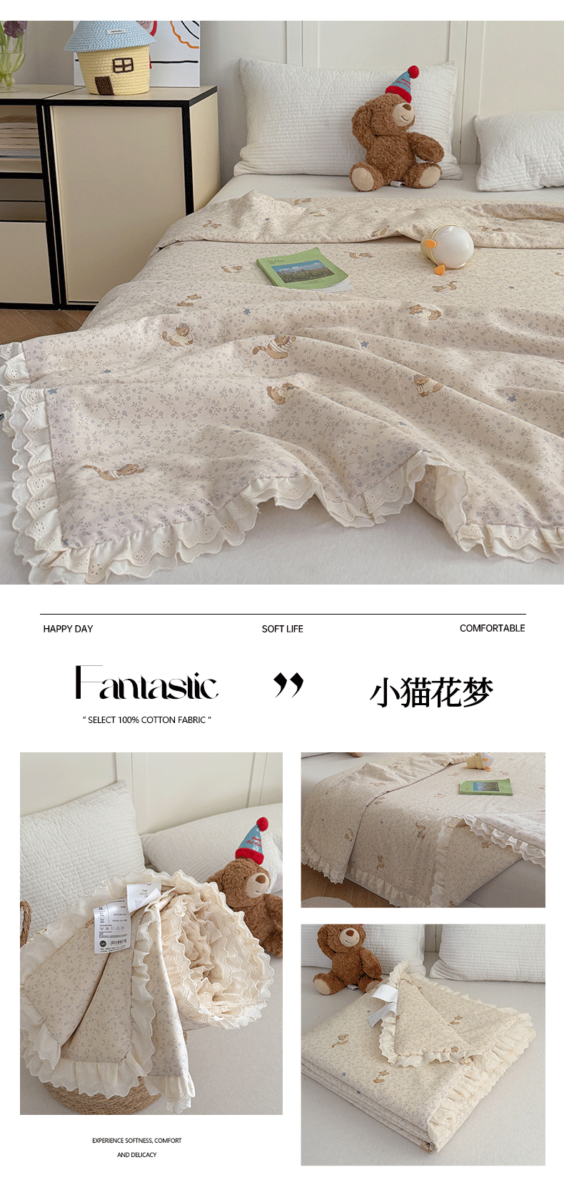 (总)暖生活 2026春夏新款全棉花边款夏被夏凉被空调被-卡通版,组合图仅供展示不可下单,快乐小新,蕾丝兔,南瓜小熊,软蓝小宠,小猫花梦,小小马,星月凯蒂,紫芋小兔,字母小象