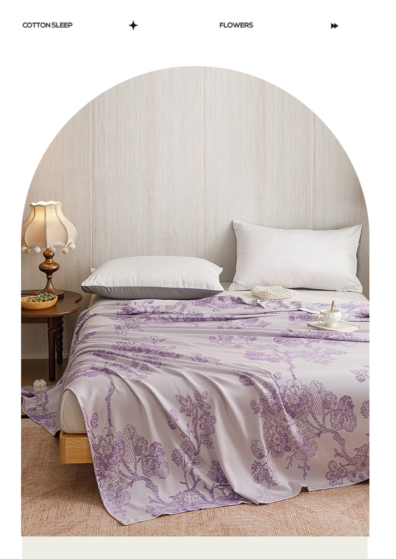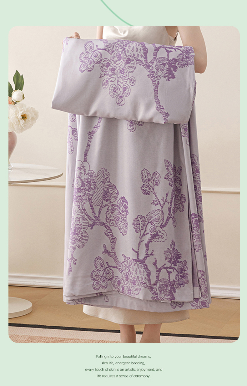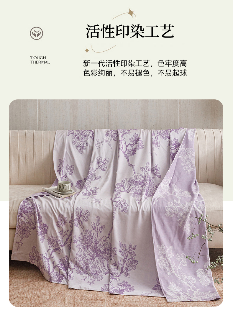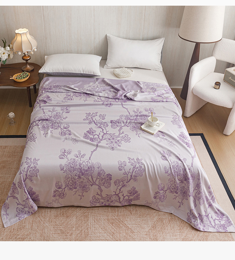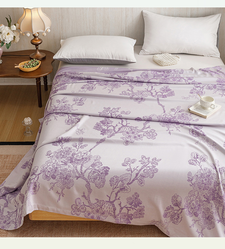 商品名称:悦然毛巾被 2026新款竹纤维冷感毯盖毯再生素纤维休闲夏被毛巾被夏凉被空调被 浪漫花开紫