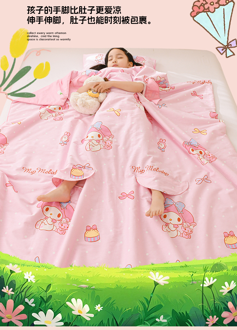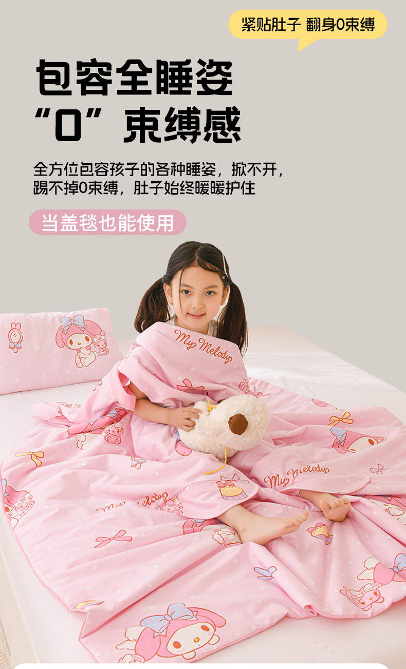 商品名称:名兮家居 2026新款经典奥特曼三丽鸥A类全棉纯棉儿童睡袋护肚防踢被 防踢被-魔法美乐蒂