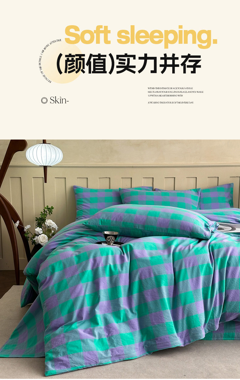 当前位置: 91家纺网 > 商品网购 > 床品套件 > 四件套 > 全棉普通四件套 > 女子家纺 2026新款全棉色织水洗棉简约四件套 蓝粉格