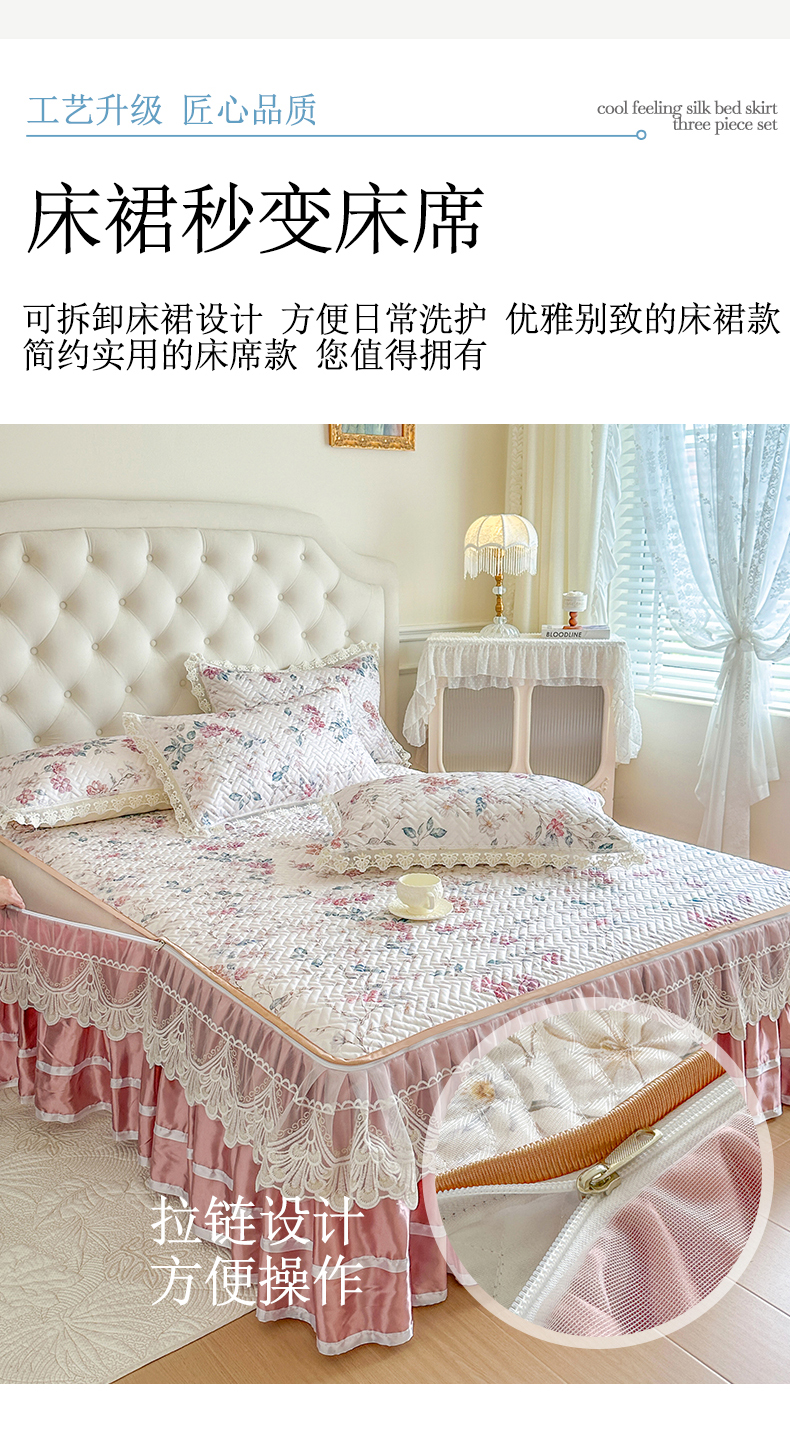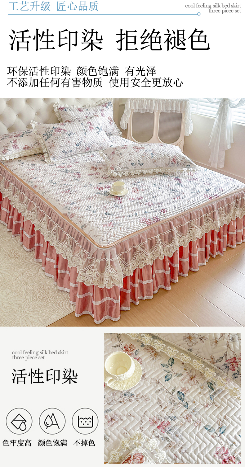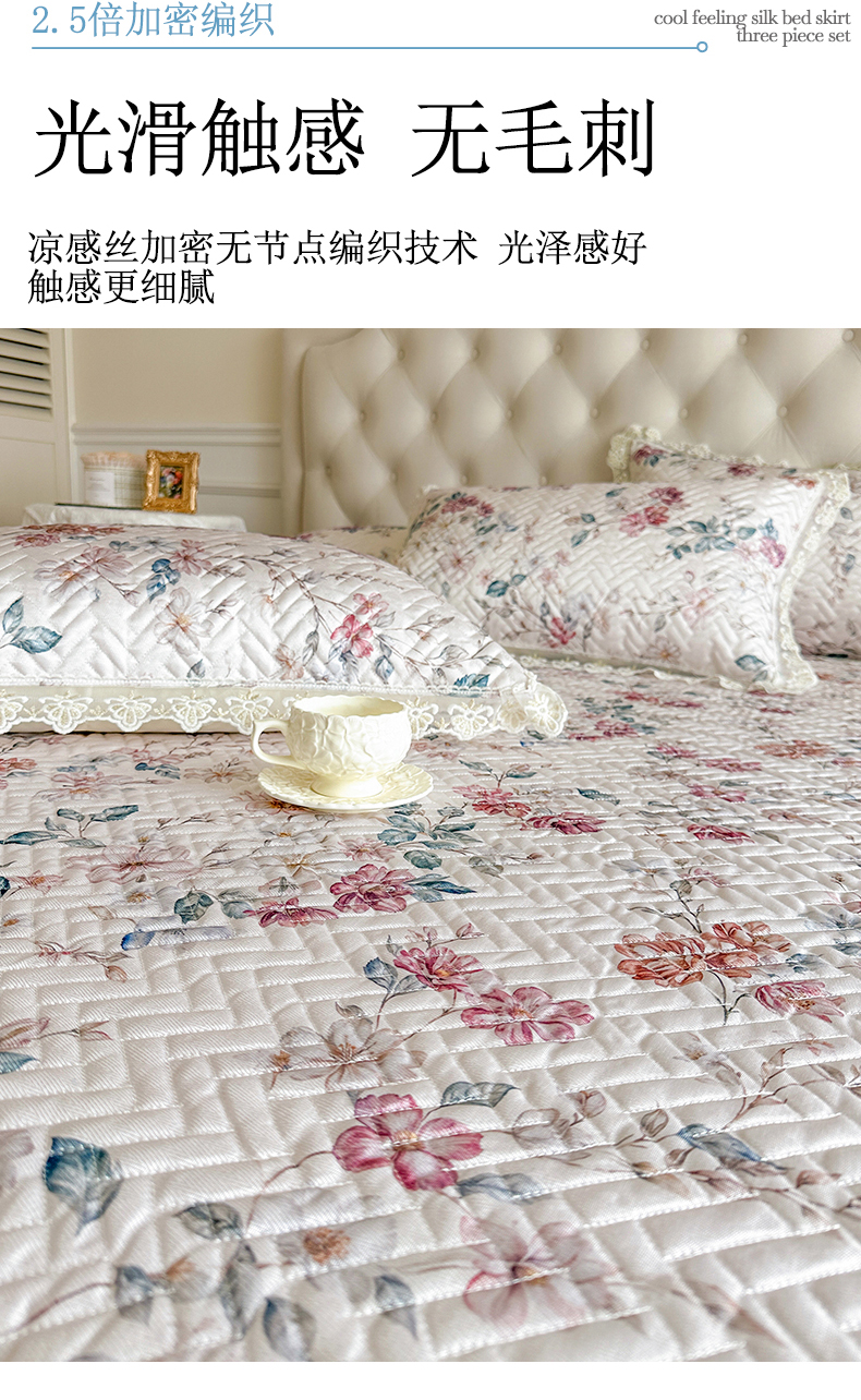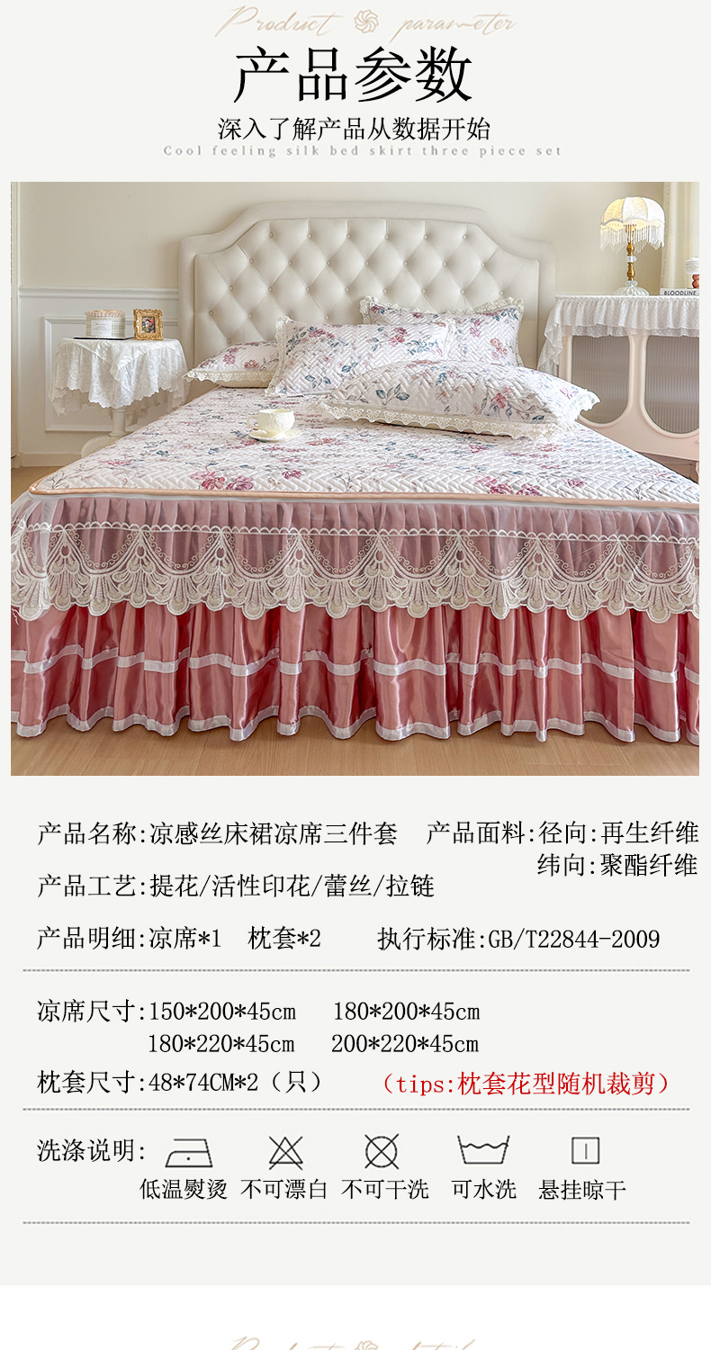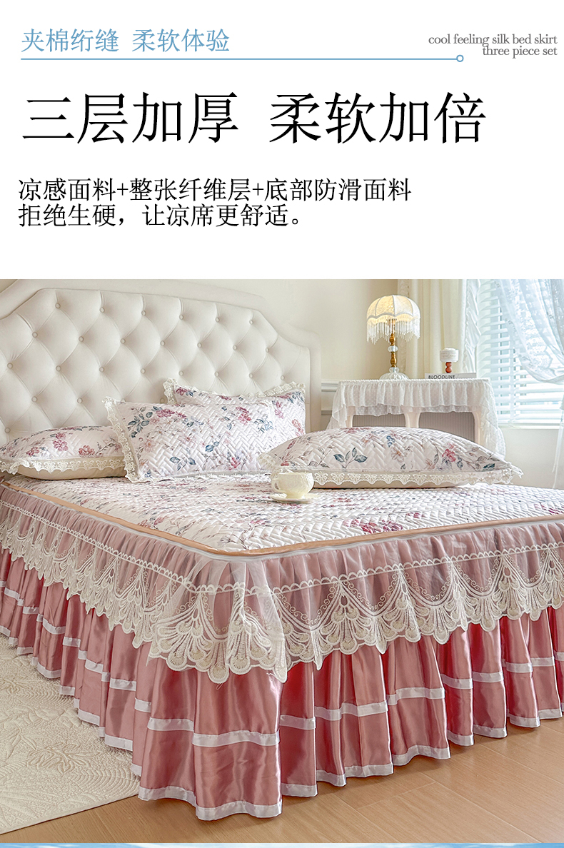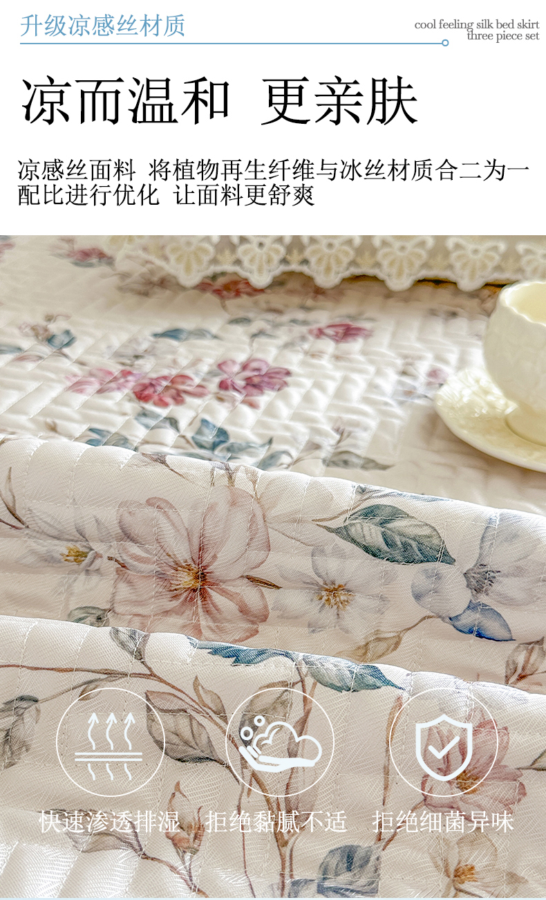 (总)网红馆(ck家纺) 2026新款冰丝夏被床裙款凉席三件套-恋夏花开(控价:三件套170元起 四件套270元起),恋夏花开-粉,恋夏花开-灰,恋夏花开-绿