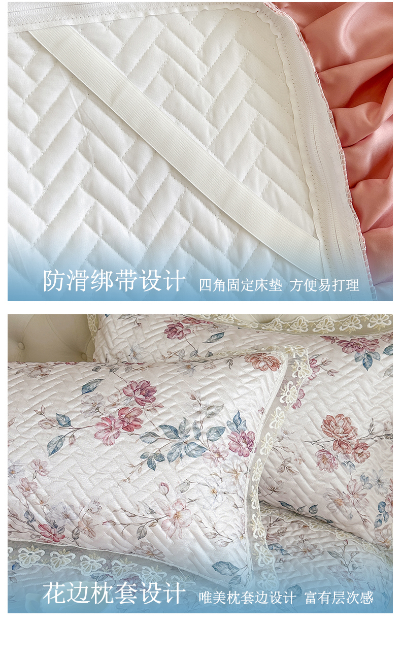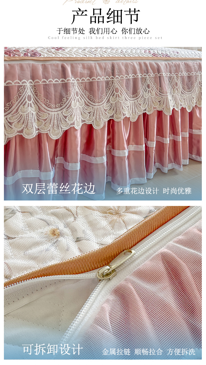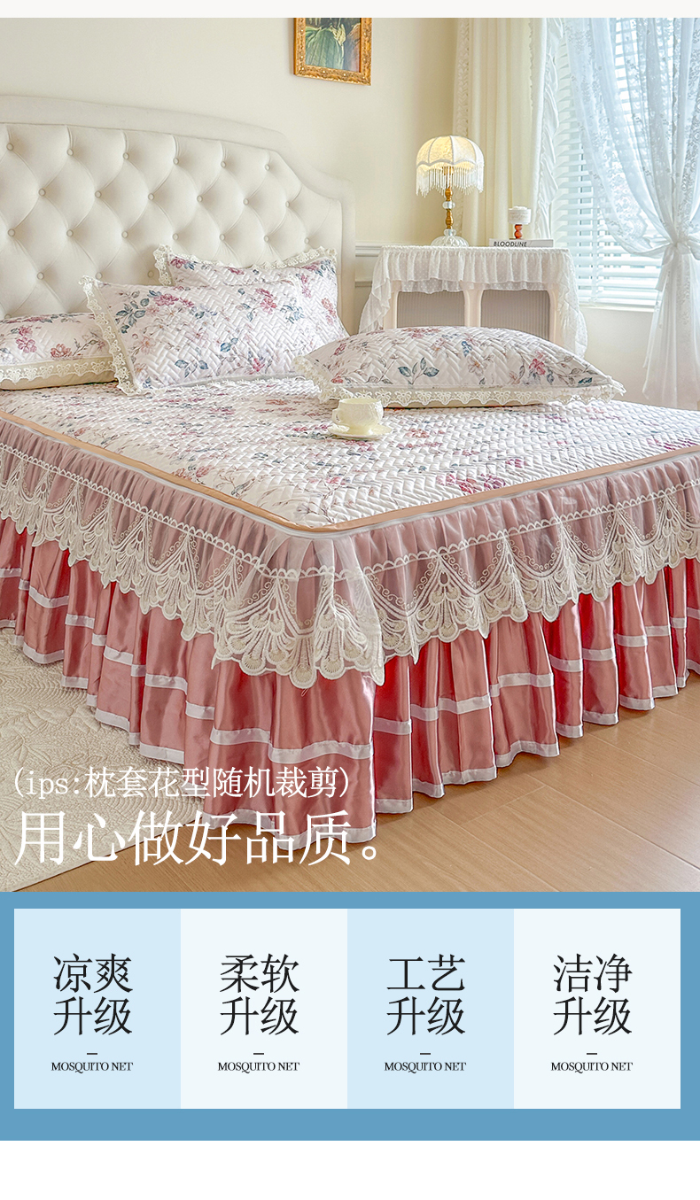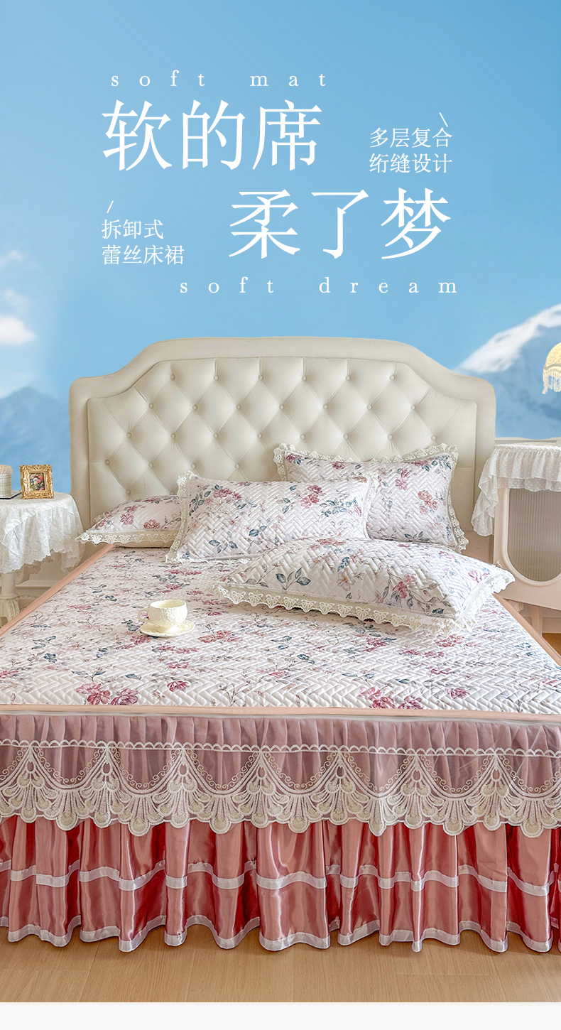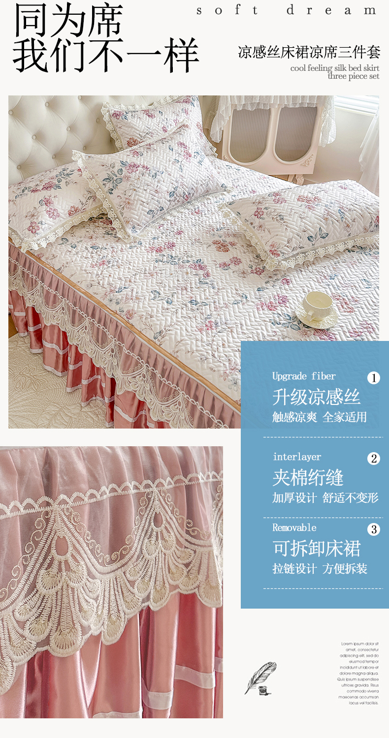 (总)网红馆(ck家纺) 2026新款冰丝夏被床裙款凉席三件套-恋夏花开(控价:三件套170元起 四件套270元起),恋夏花开-粉,恋夏花开-灰,恋夏花开-绿