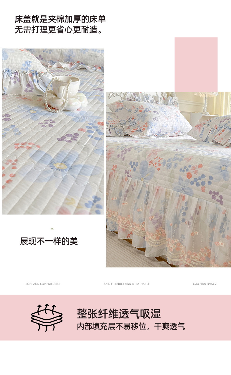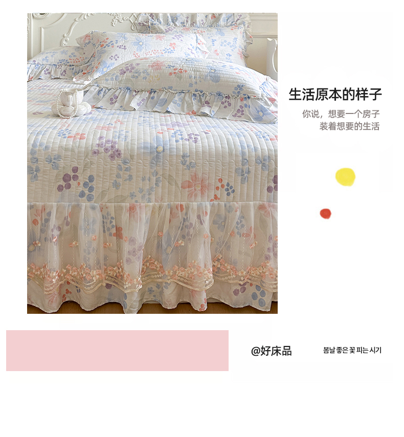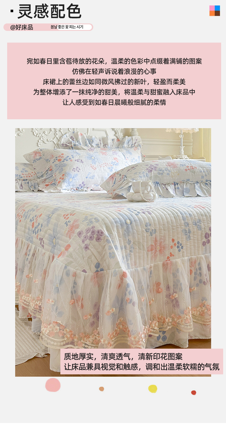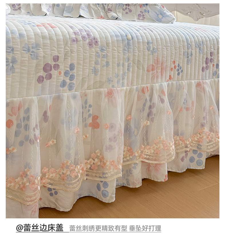(总)网红馆(ck家纺) 2026春夏新款小清新全棉印花床裙四件套,花蔓蓝,蕾丝花海,翩翩花语,清风花影,甜心花朵,幸福花海