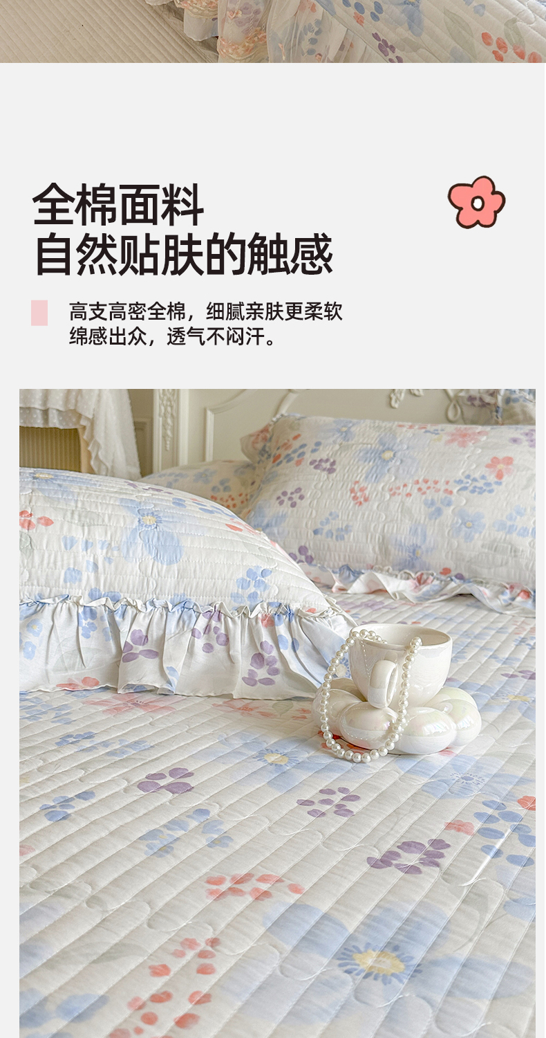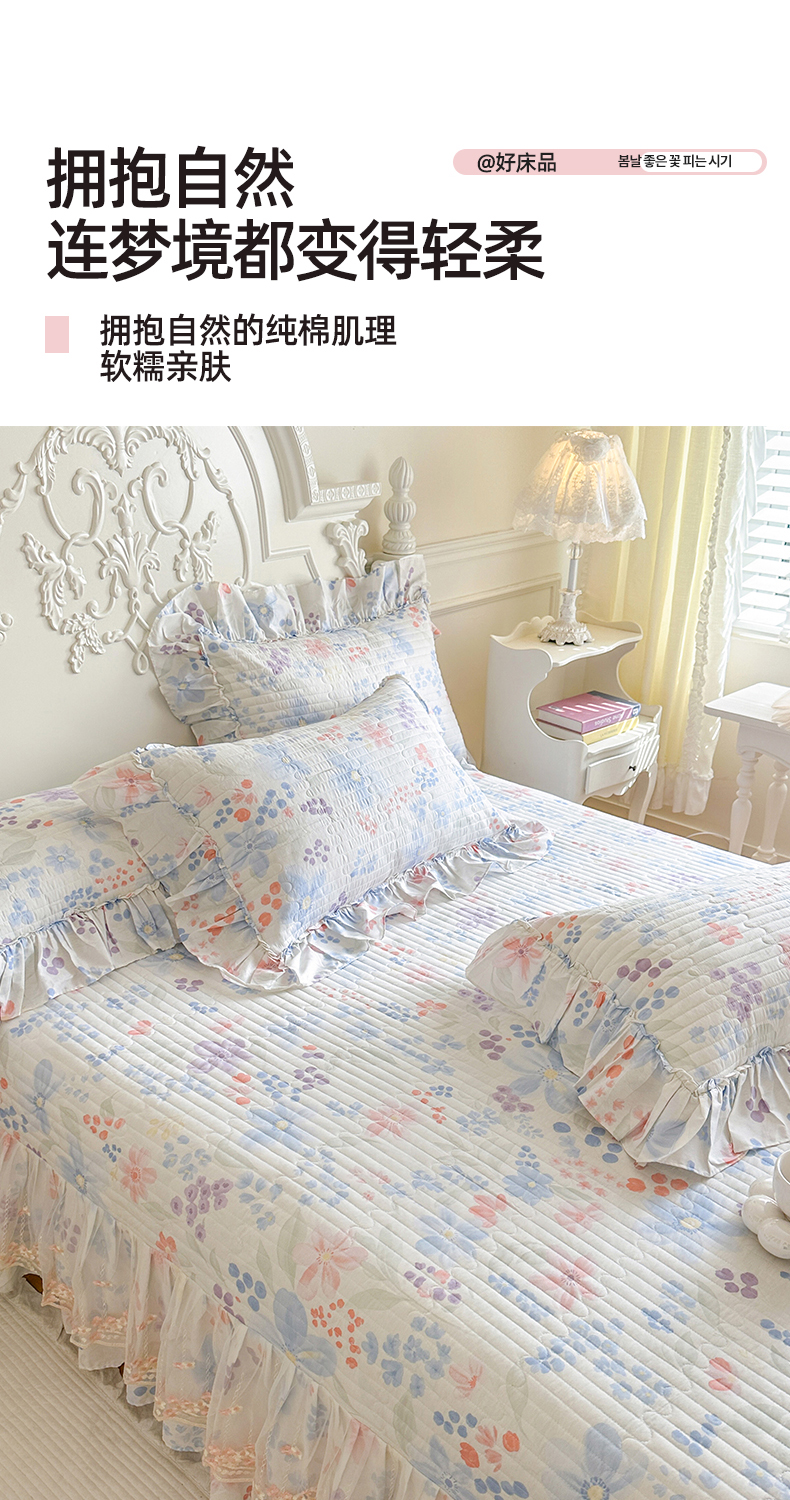商品名称:网红馆(ck家纺) 2026春夏新款韩版全棉纯棉印花床盖三件套 茉屿