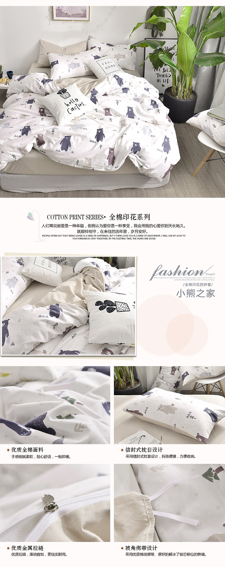漫调家纺 2018全棉北欧小清新四件套小熊之家