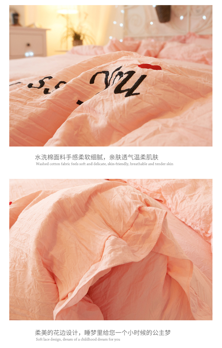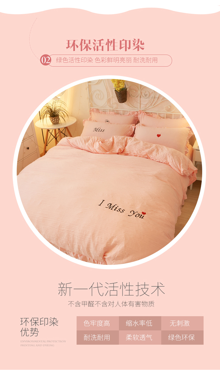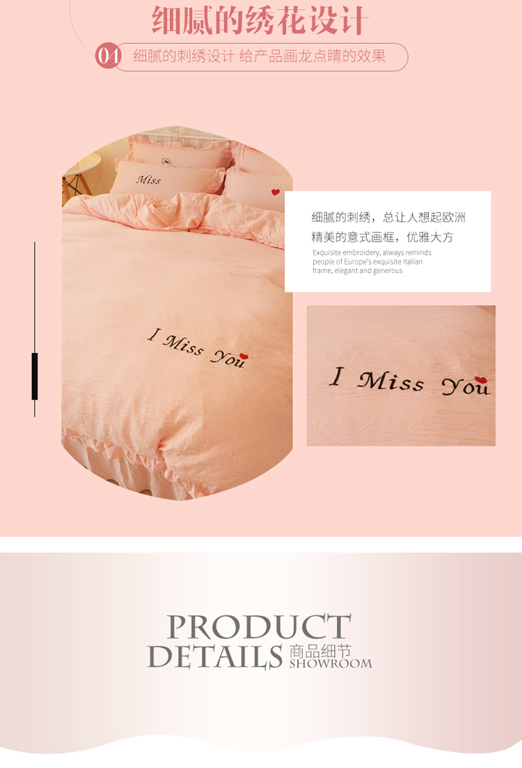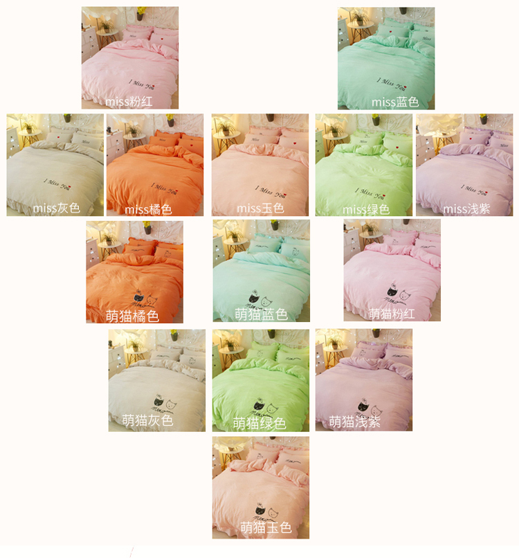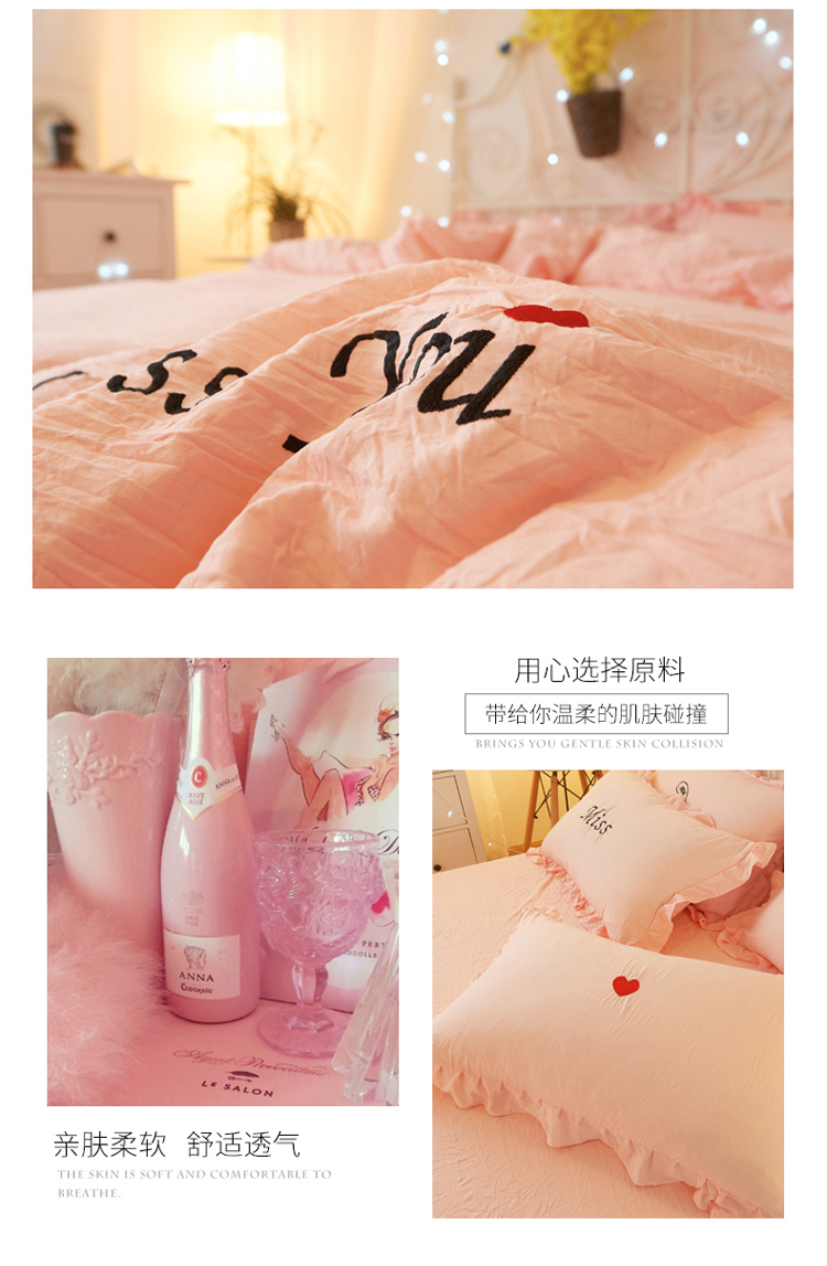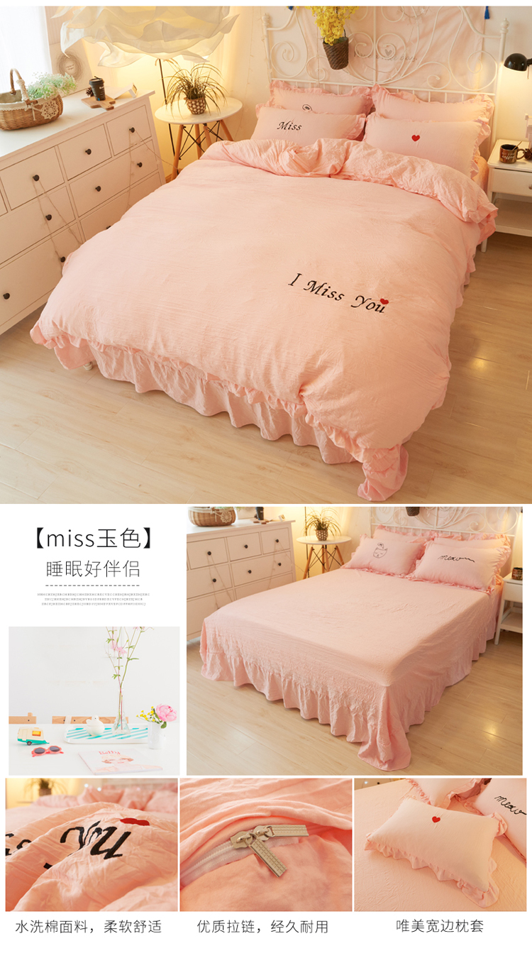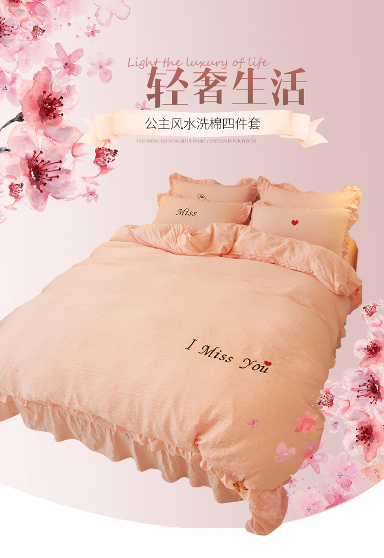 简爱家纺 2025新款水洗棉绣花四件套床单款 miss玉色