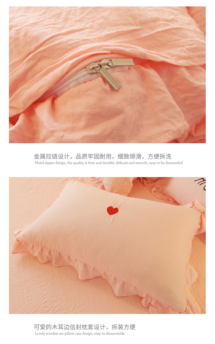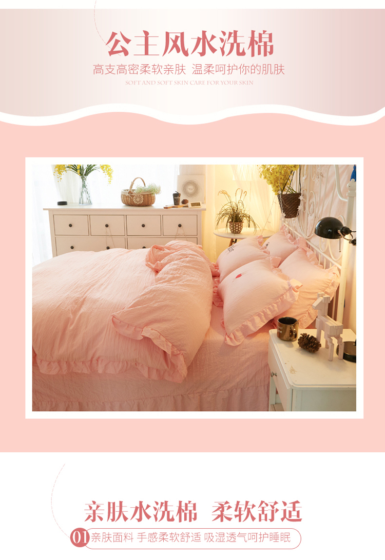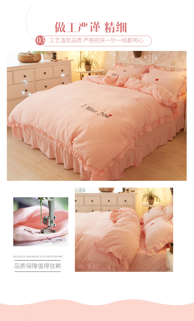 (总)简爱 2025新款水洗棉雪纺双层花边四件套,高级灰,告白玉,抹茶绿,奶油黄,夏日蓝,胭脂粉,优雅紫