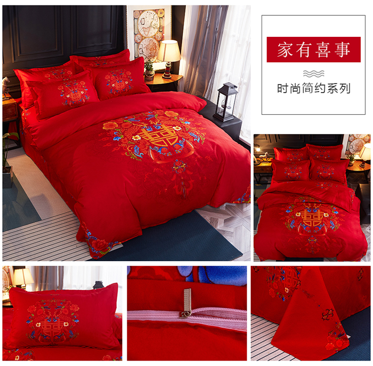 诗洋洋家纺 大版加厚磨毛四件套床单款 家有喜事