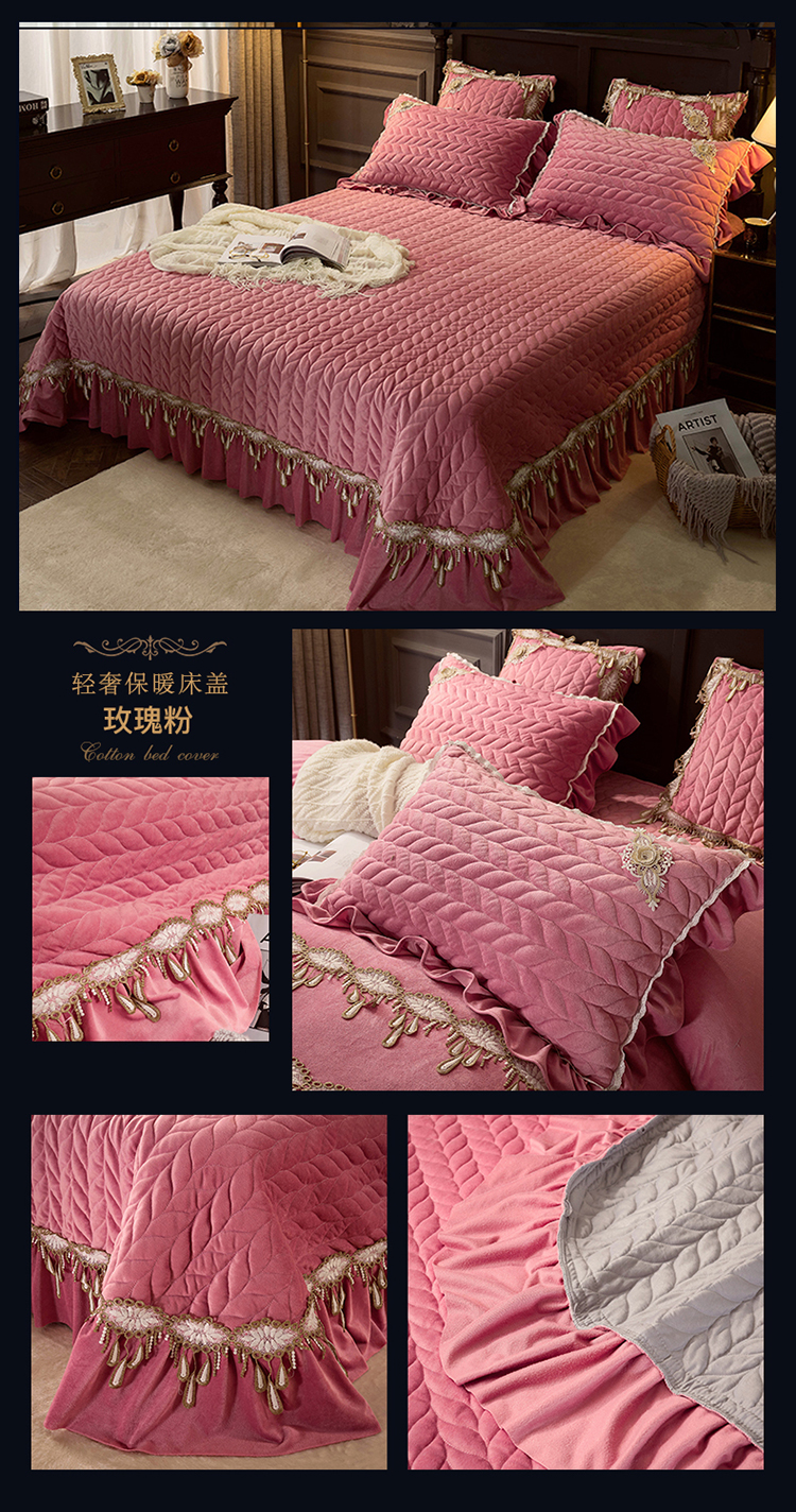 (总)菊上家纺 2019法式浪漫夹棉加厚贵妃绒系列单品床盖