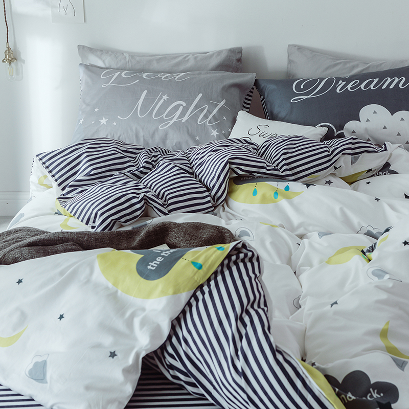 (总)一米阳光 2024新款小清新AB版全棉四件套,贝尔兰,饼干熊,粉黛,简约,卡通甜甜圈,萌萌宠,沁园-灰,沁园-卡其,沁园-紫,水果点点,月半点点