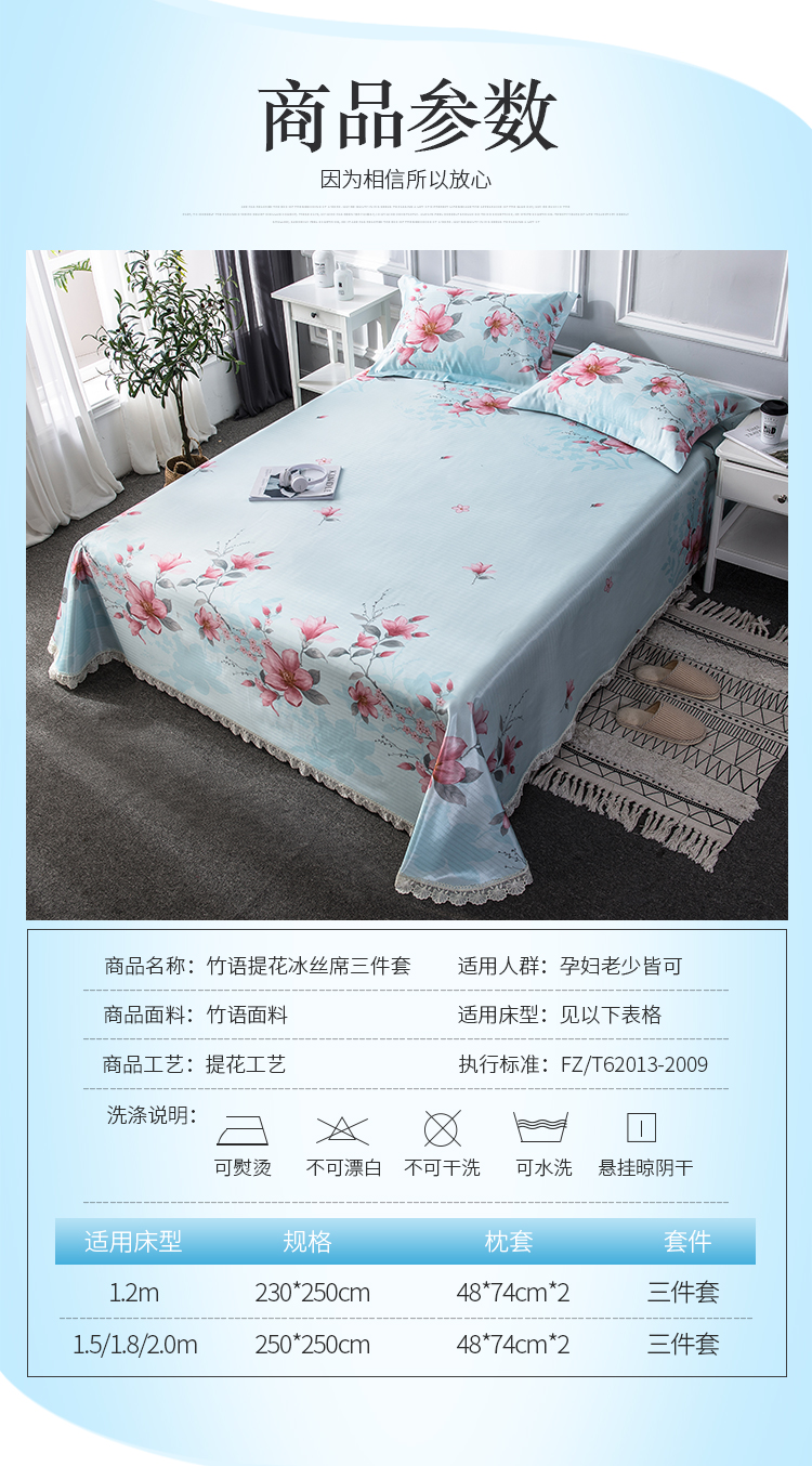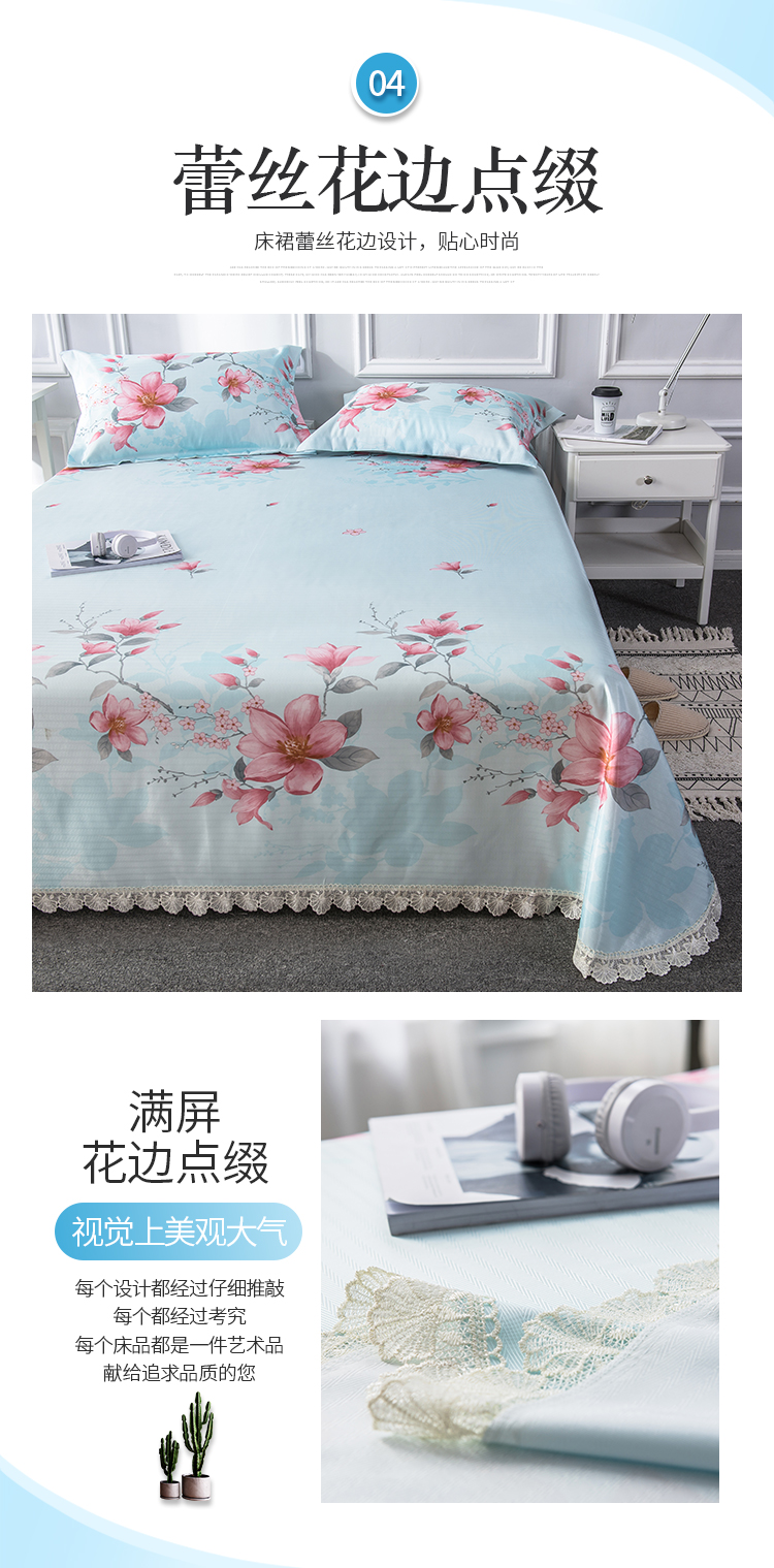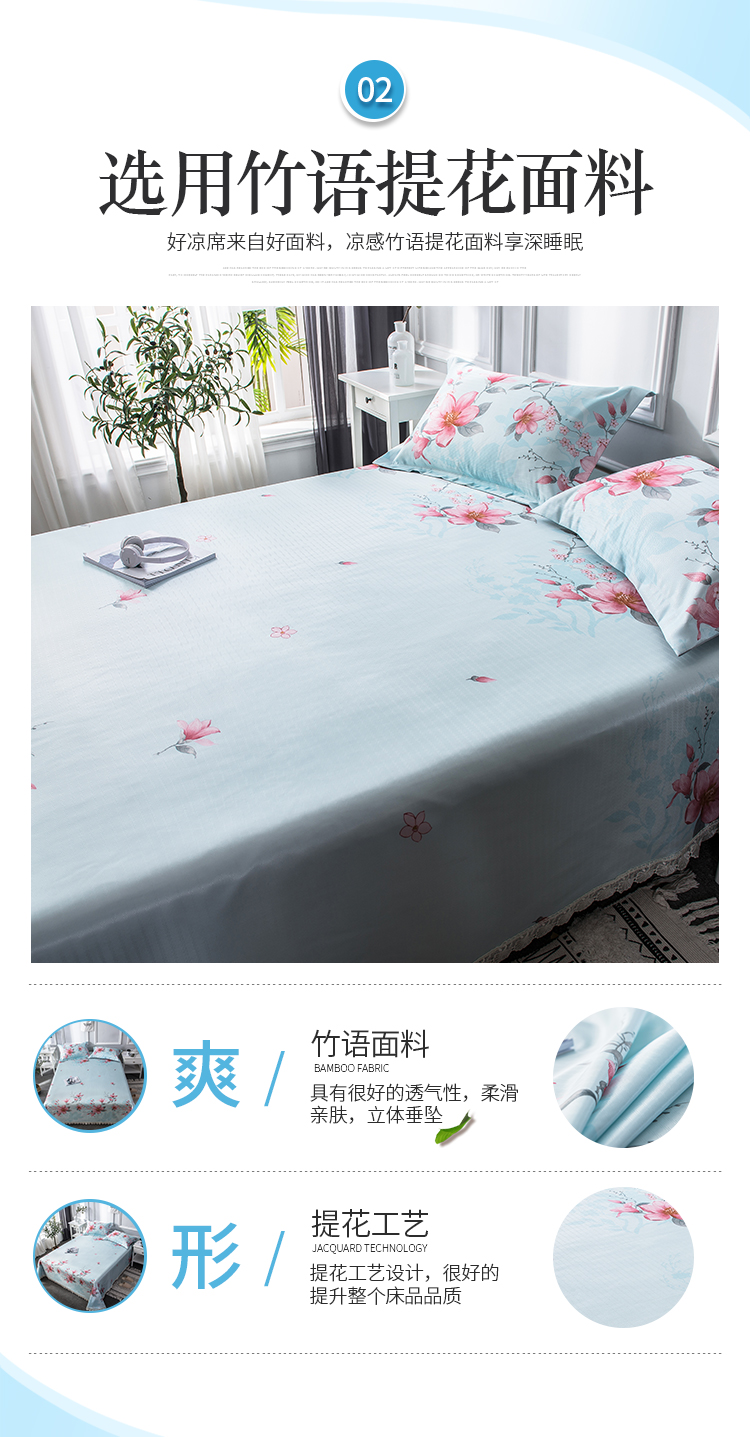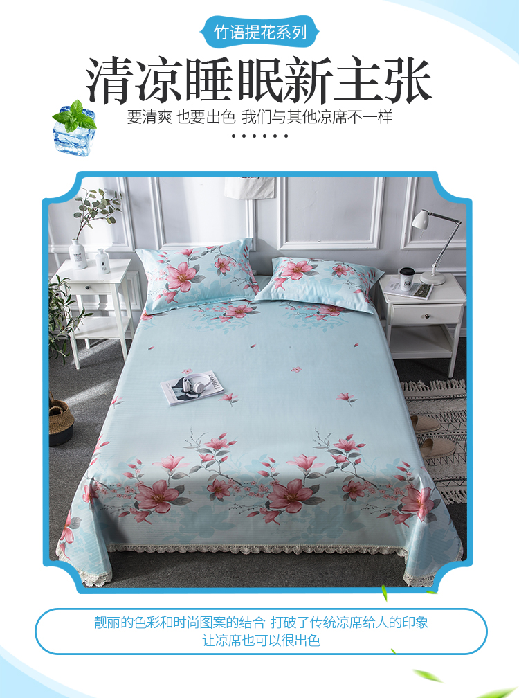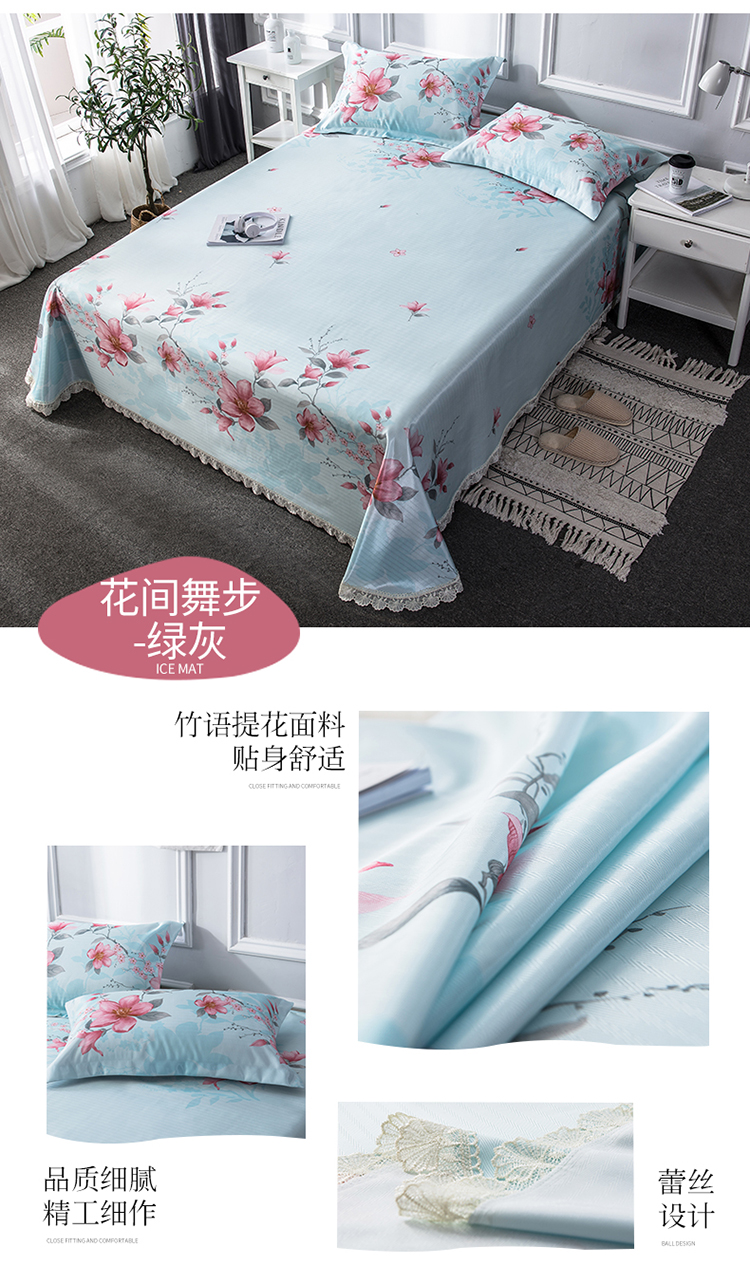 商品名称:懒猫 2020新款竹语提花花边床单款冰丝席 花间舞步(绿灰)