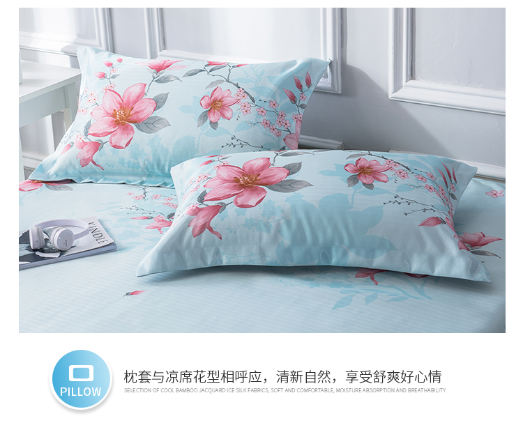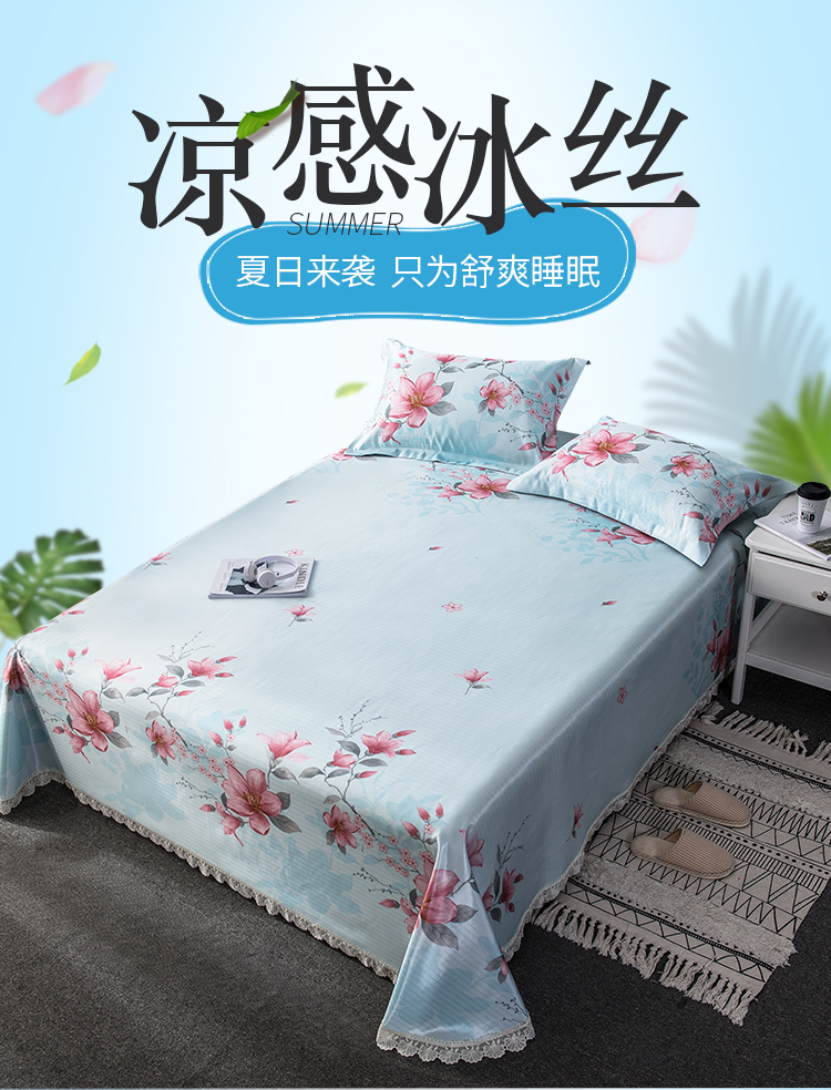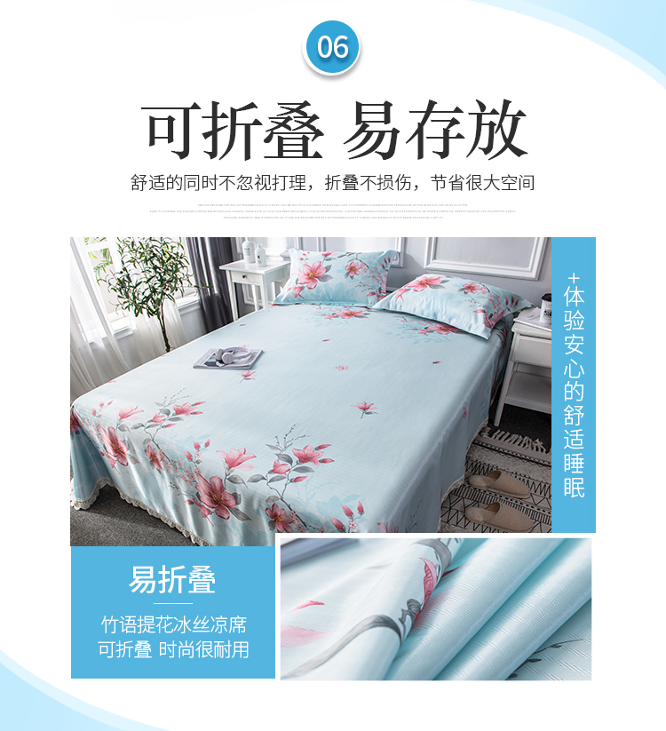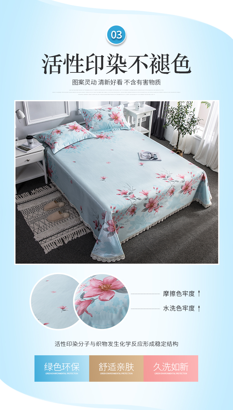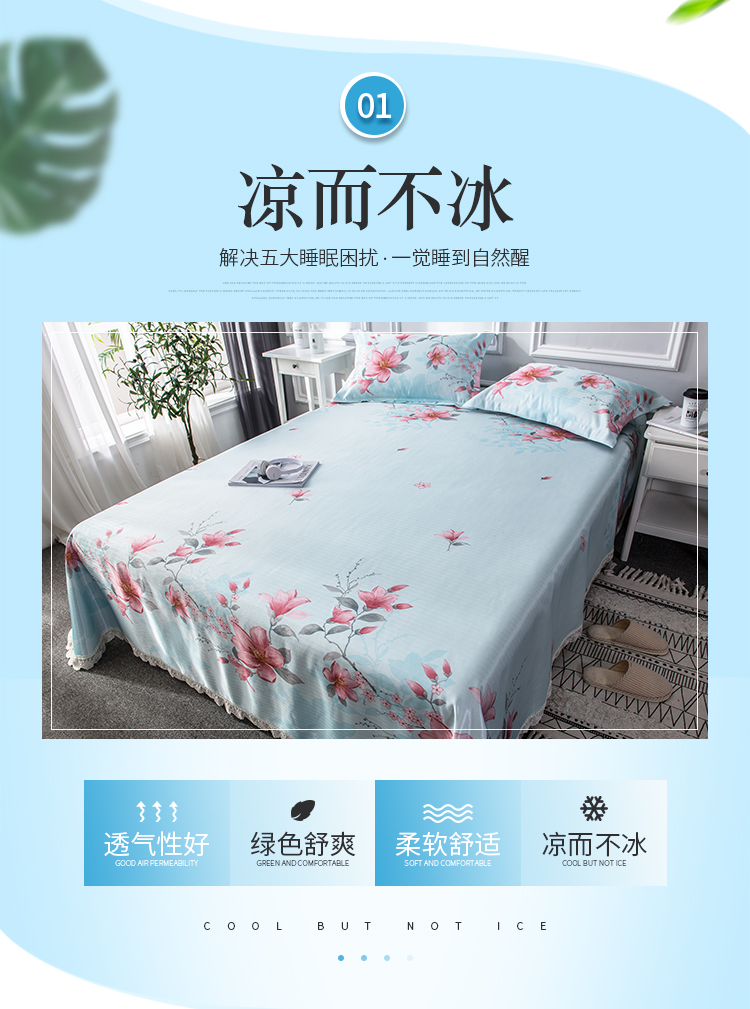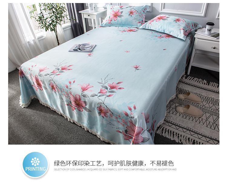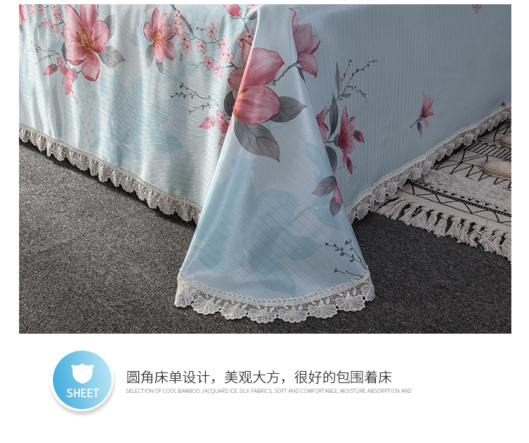 商品名称:懒猫 2020新款竹语提花花边床单款冰丝席 花间舞步(绿灰)