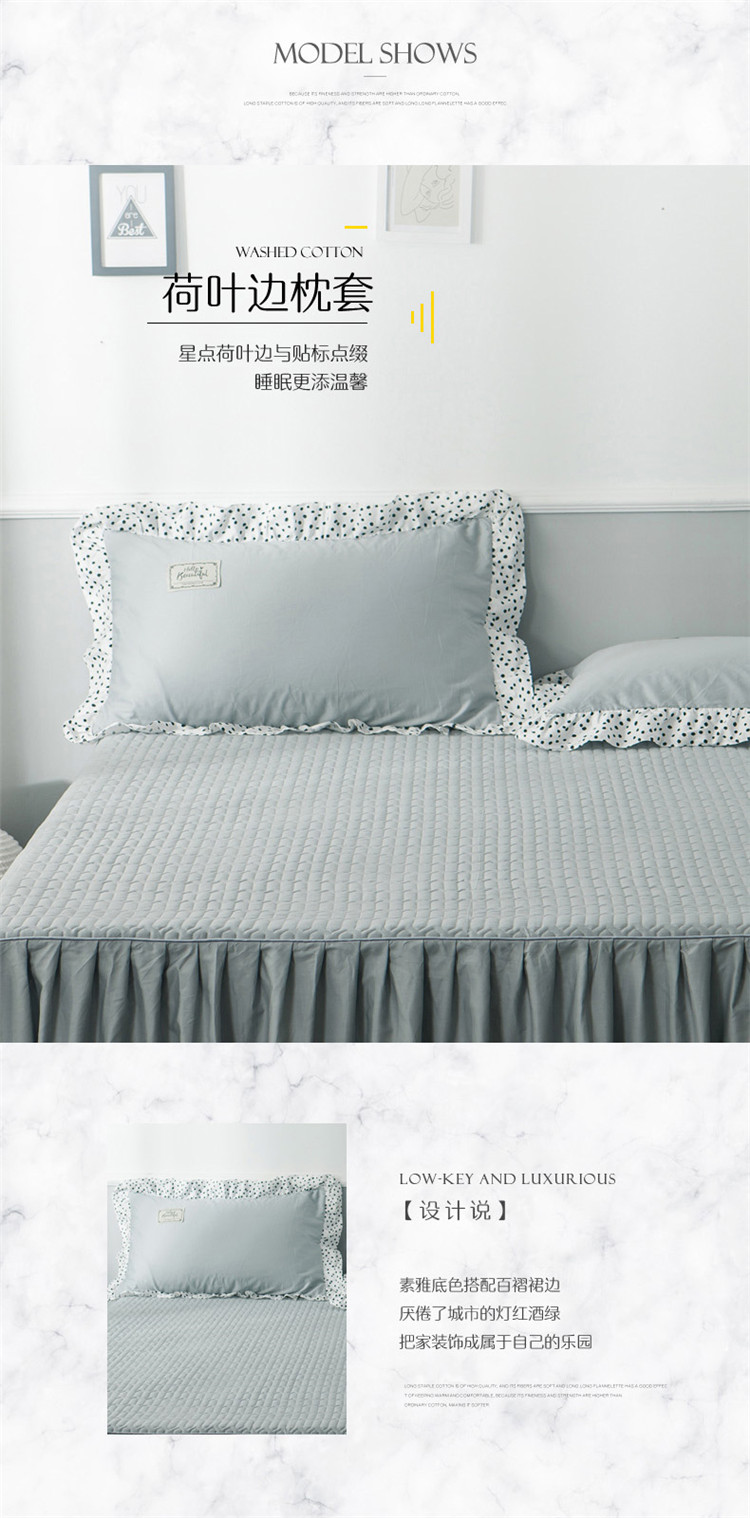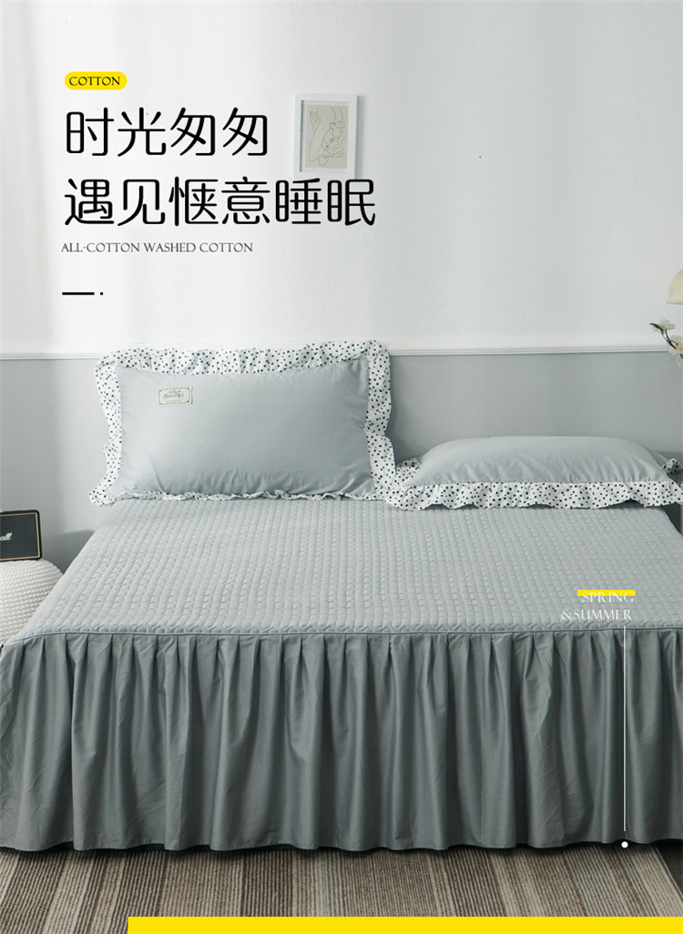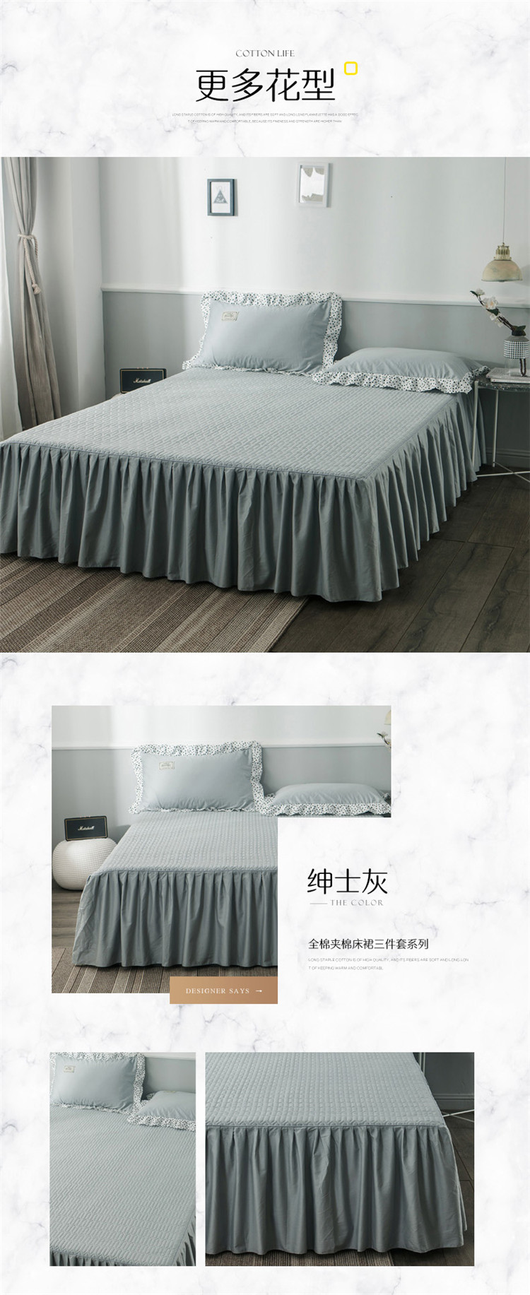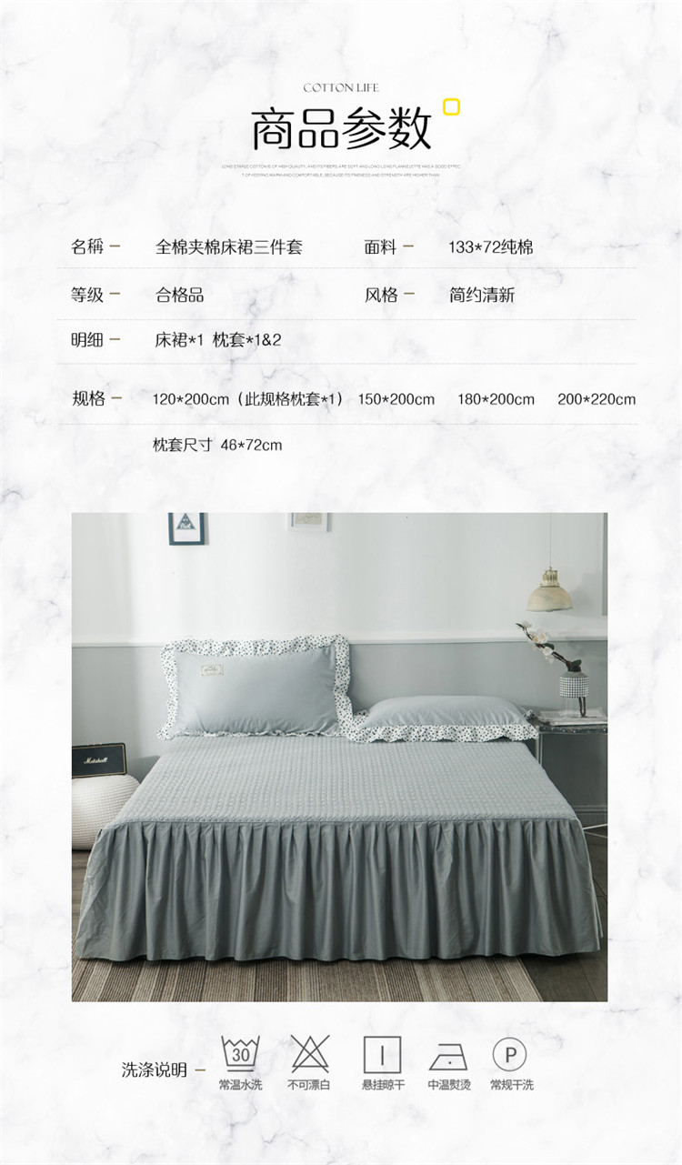商品名称:万盛家纺 全棉滚绳款单品夹棉床裙 绅士灰