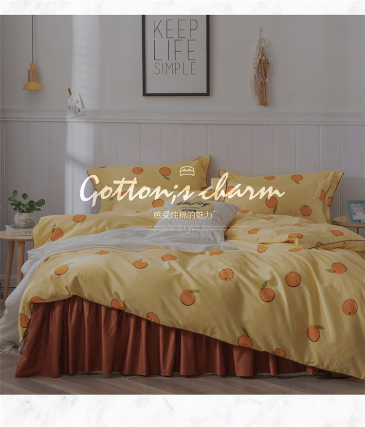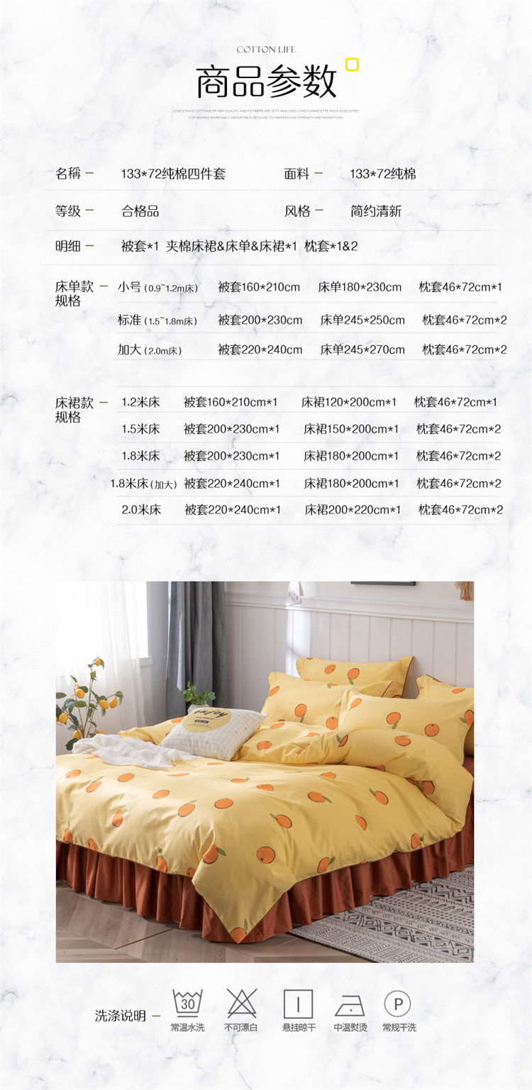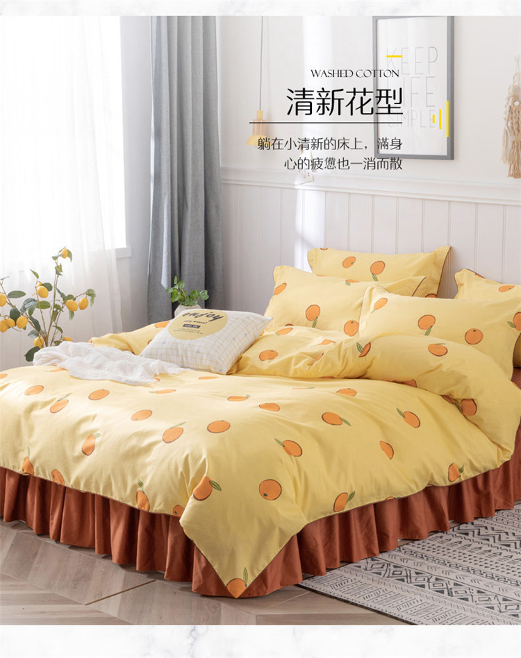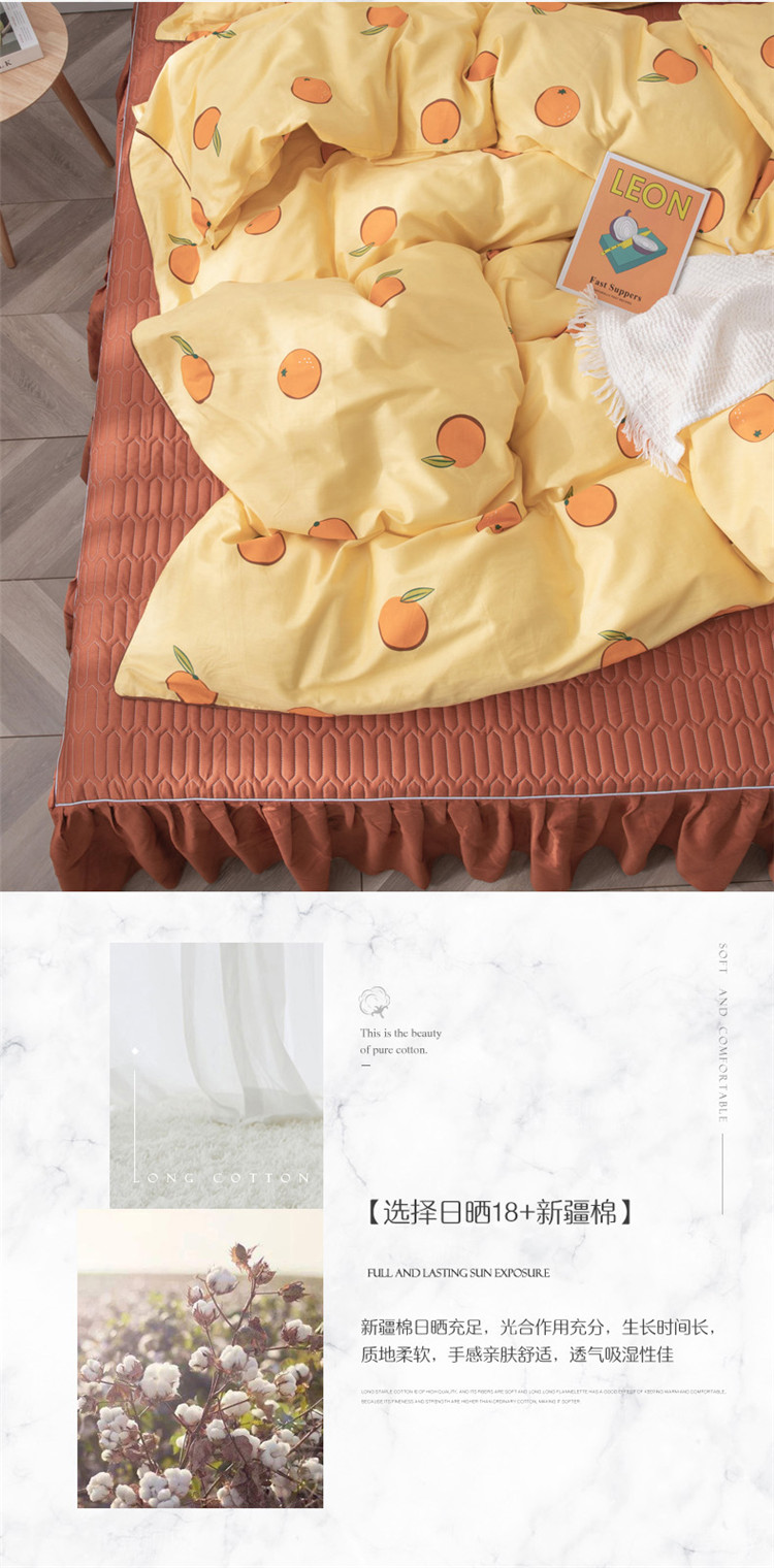 商品名称:万盛家纺 全棉滚绳款夹棉床裙四件套 橙之恋