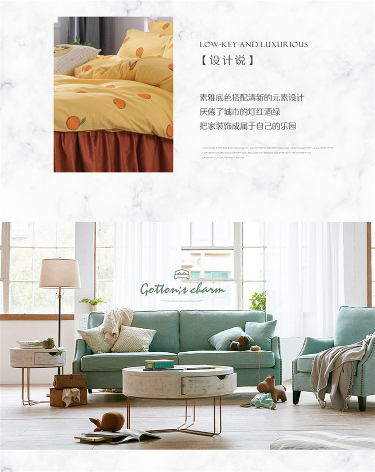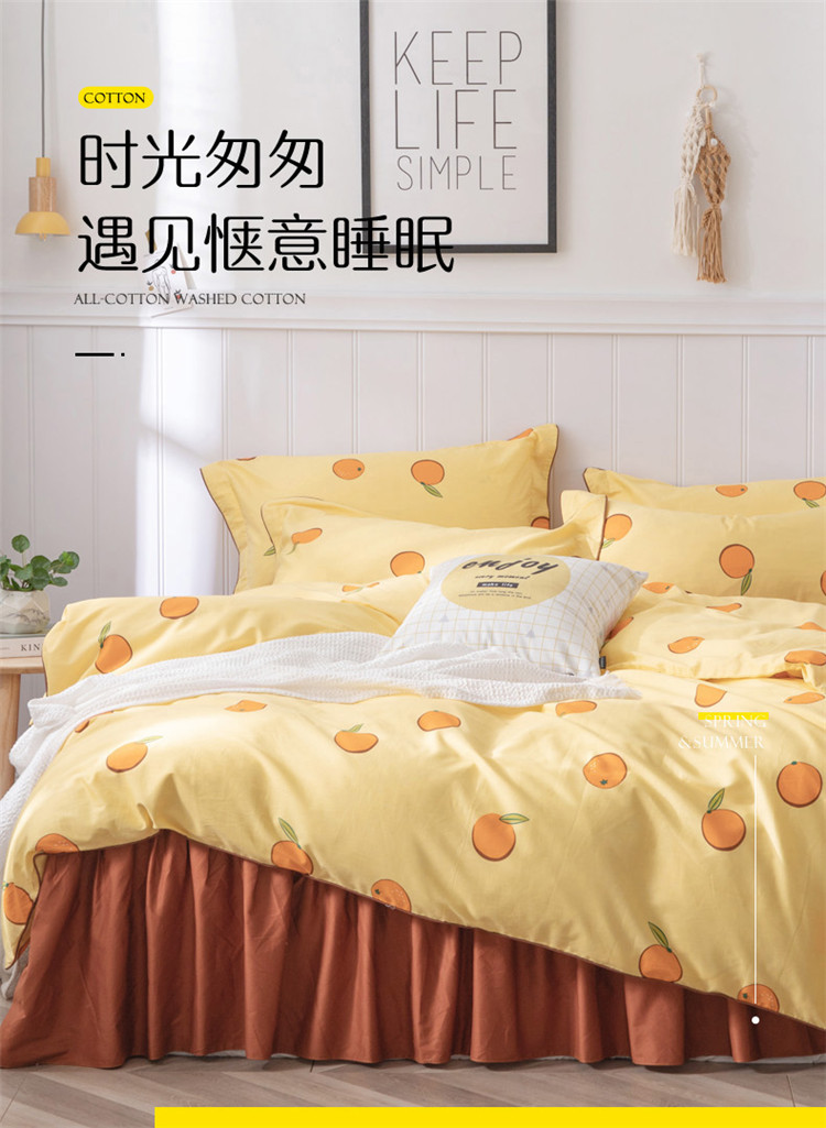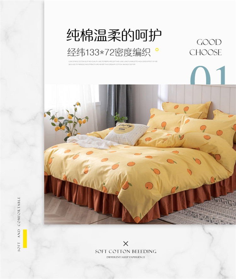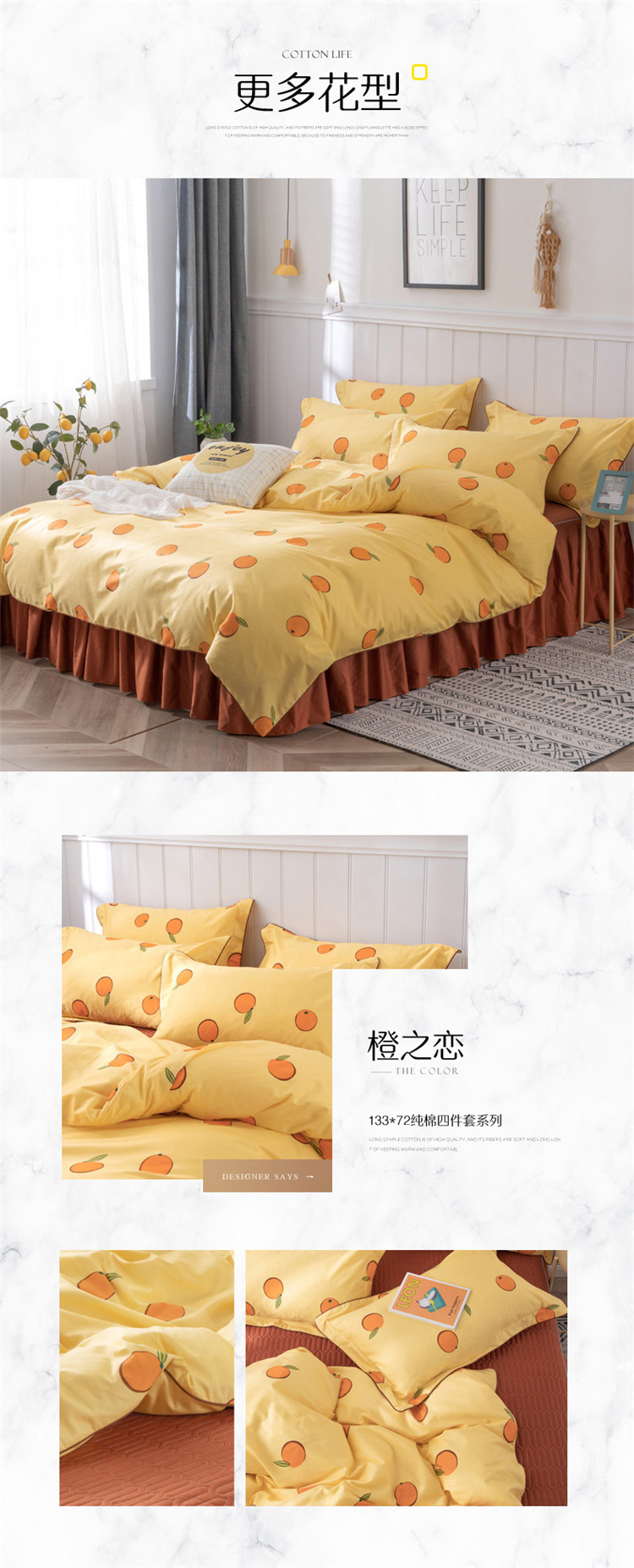 商品名称:万盛家纺 全棉滚绳款夹棉床裙四件套 橙之恋