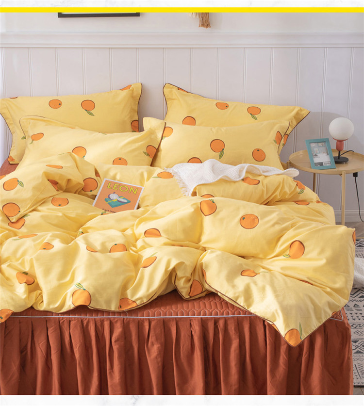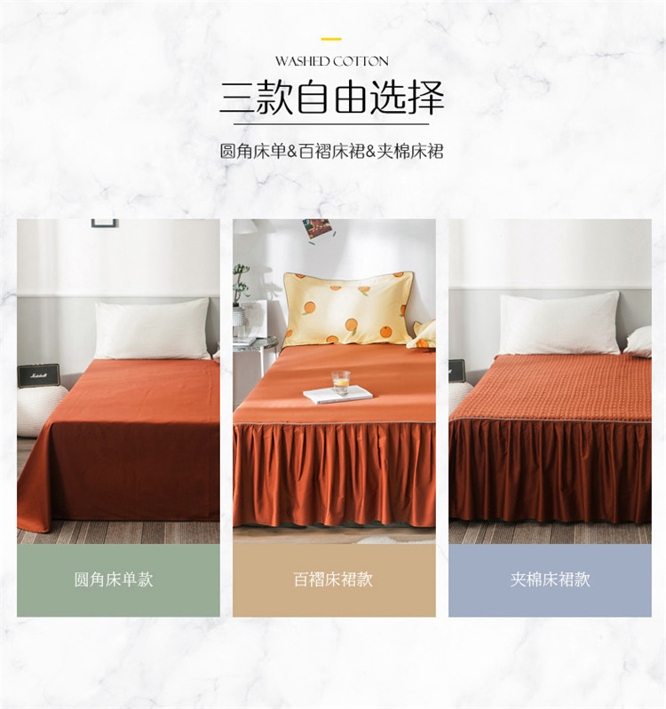 万盛家纺 全棉滚绳款夹棉床裙四件套 橙之恋
