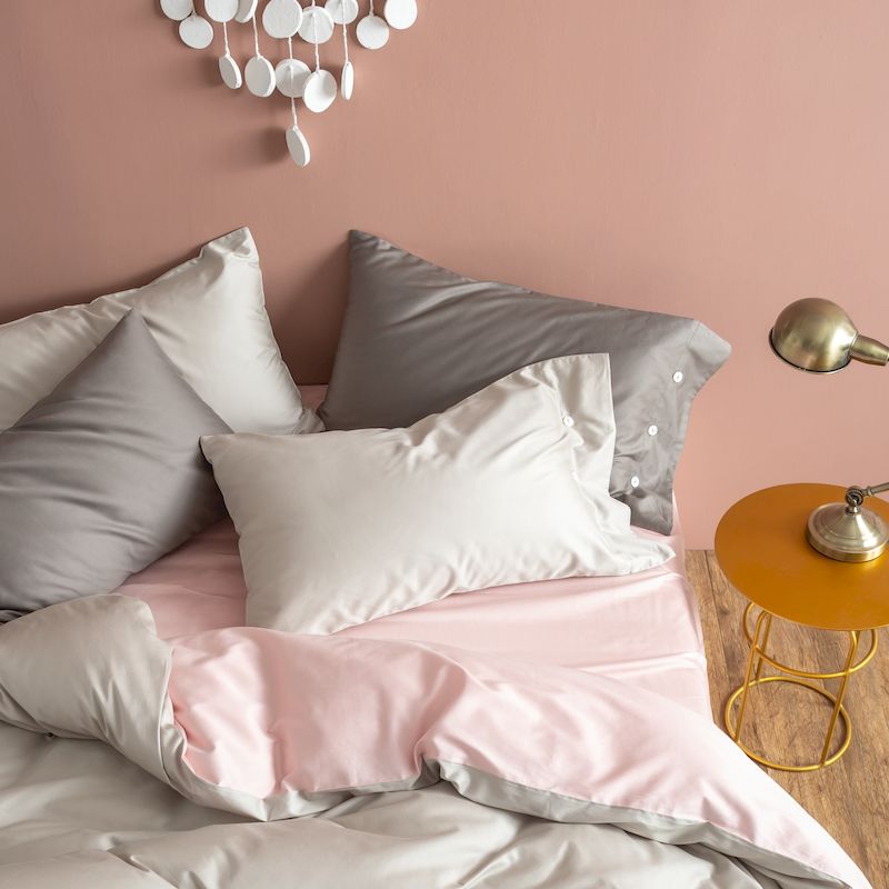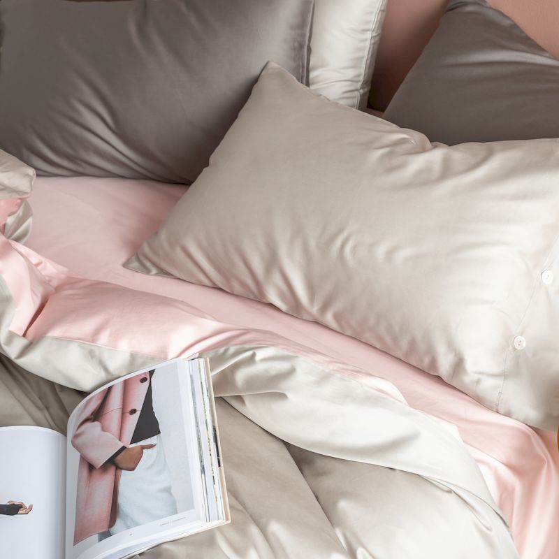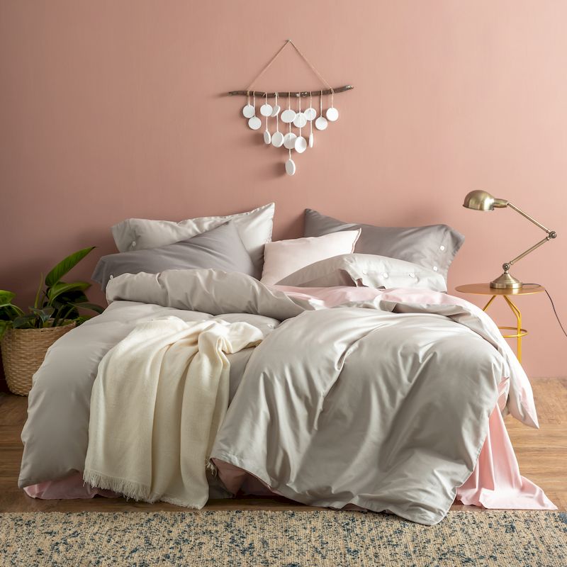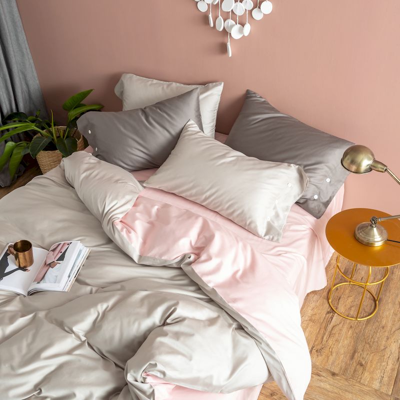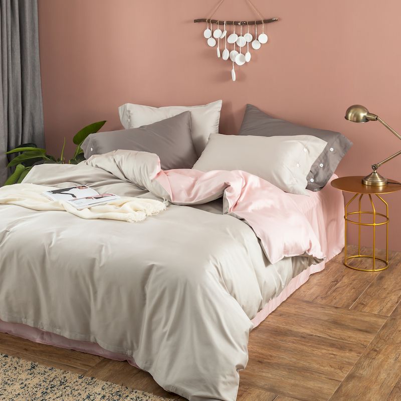 涞澳家纺 2019新款60长绒棉平色二简易四件套浅藕粉配烟灰