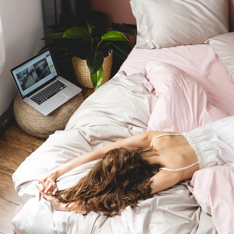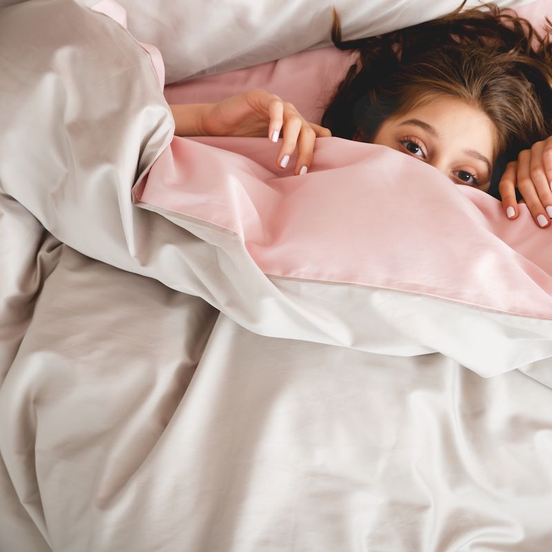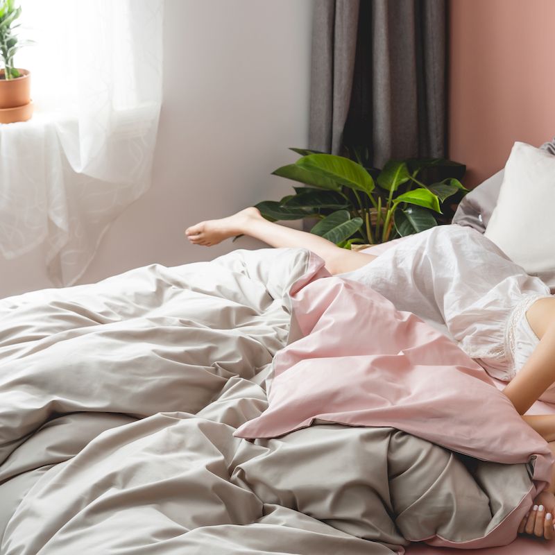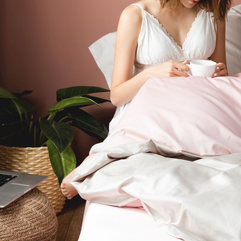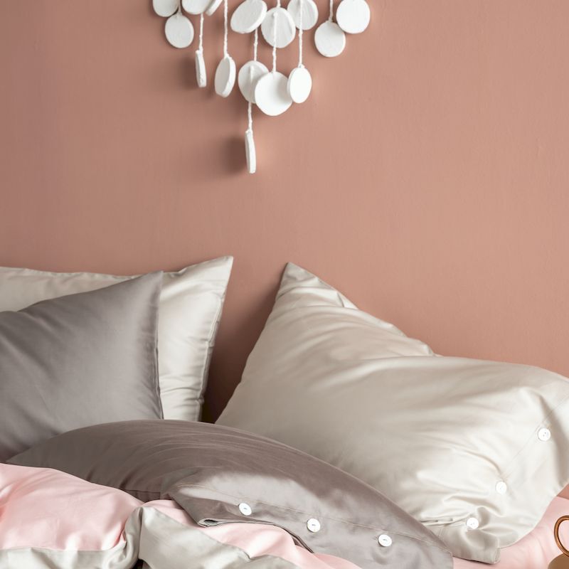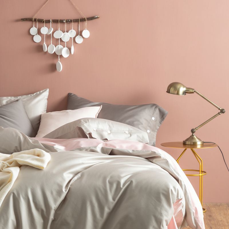 涞澳家纺 2019新款60长绒棉平色二简易四件套浅藕粉配烟灰