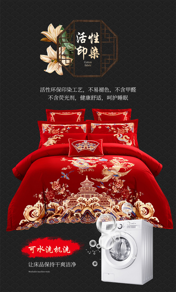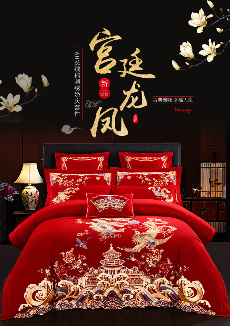 千禧家纺 2019新款长绒棉婚庆多件套 宫廷龙凤