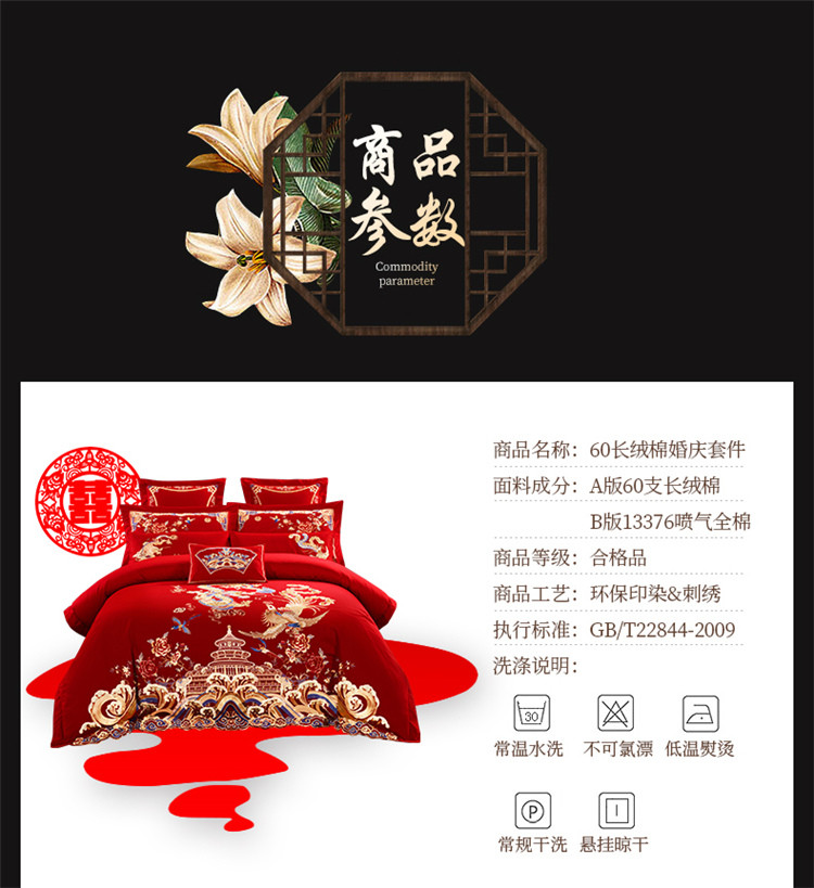 商品名称:千禧家纺 2019新款长绒棉婚庆多件套 宫廷龙凤