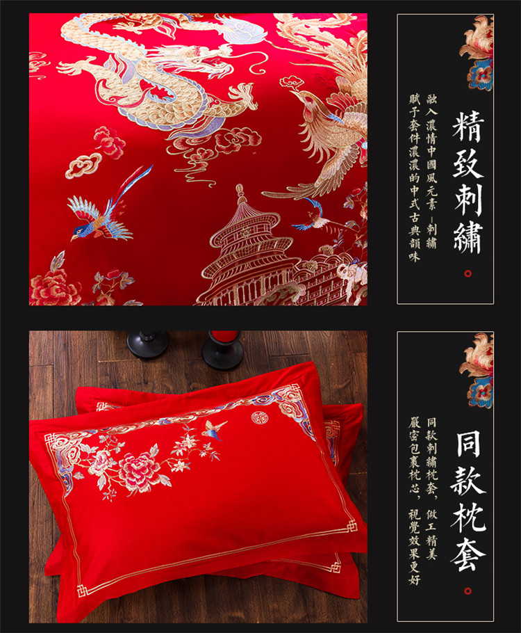 (总)千禧家纺 2025新款双面长绒棉提花工艺重工刺绣婚庆多件套,龙凤呈瑞,龙凤相随,龙凤织锦,龙翔凤舞,龙章凤姿,天配龙凤