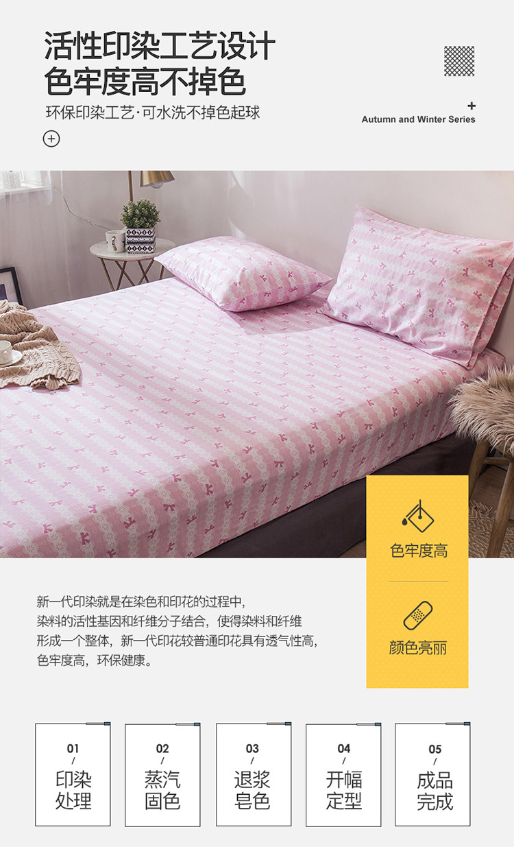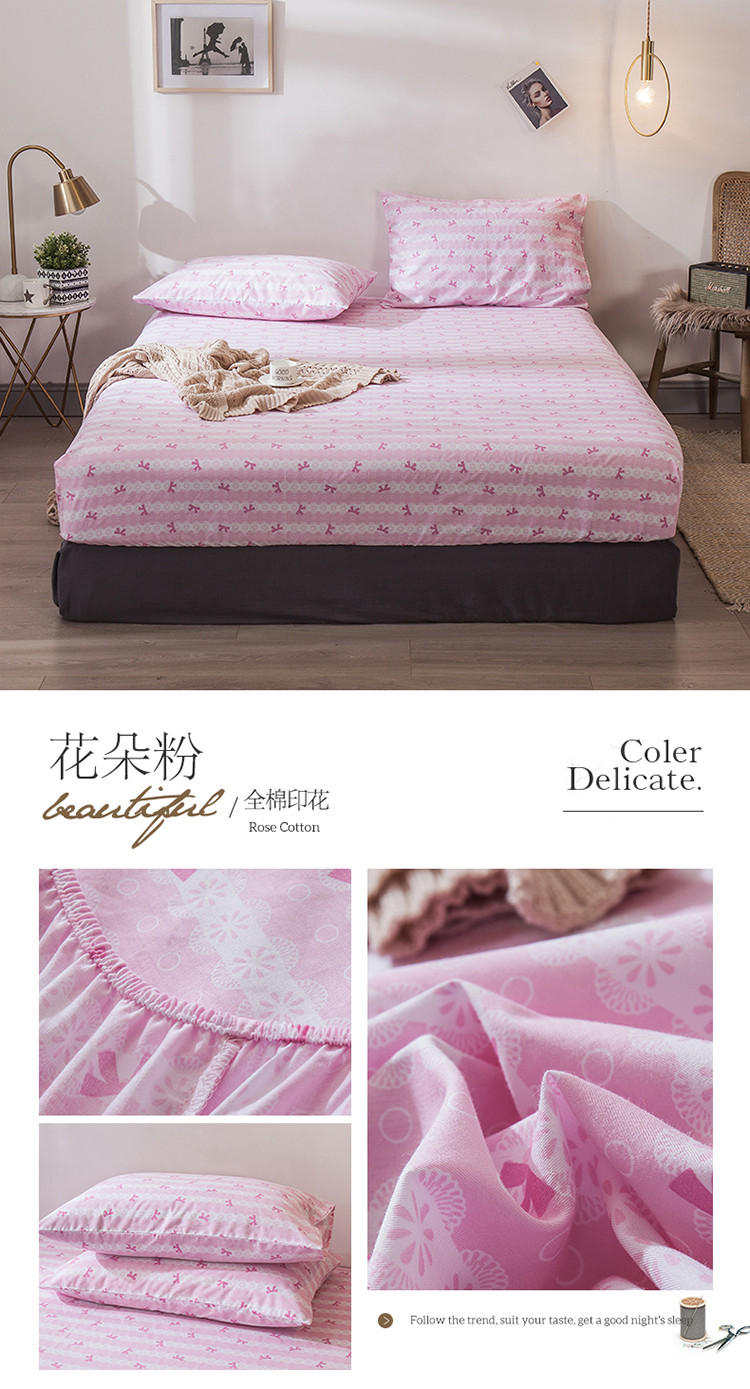 商品名称:宝齐莱家纺 2019全棉小清新印花单床笠 花朵粉