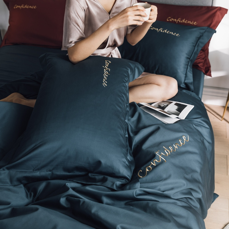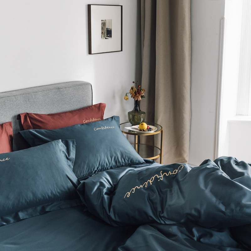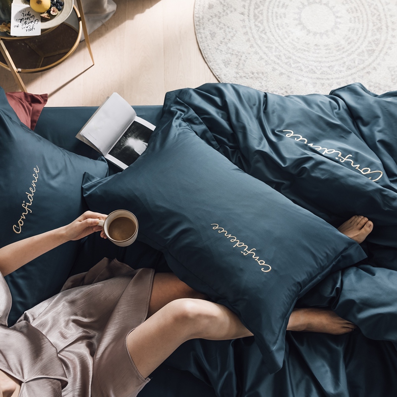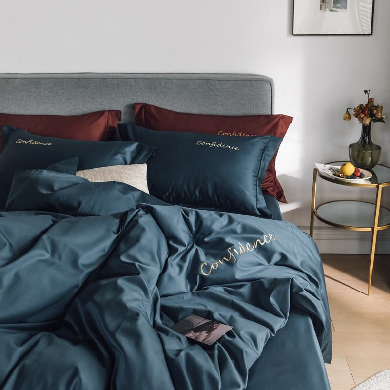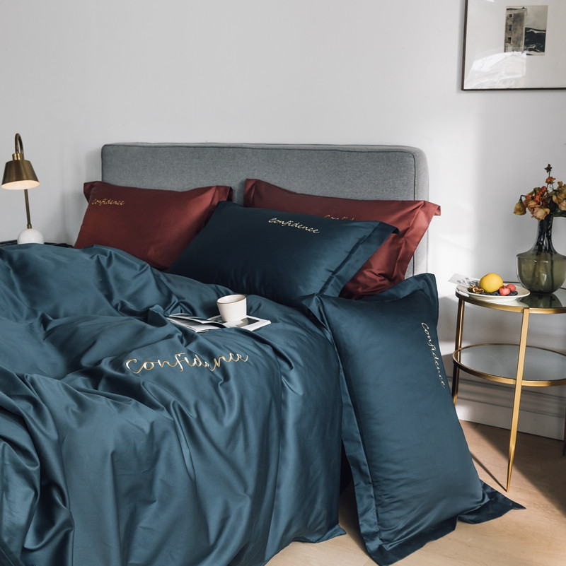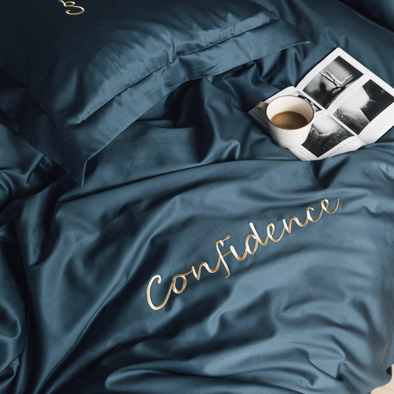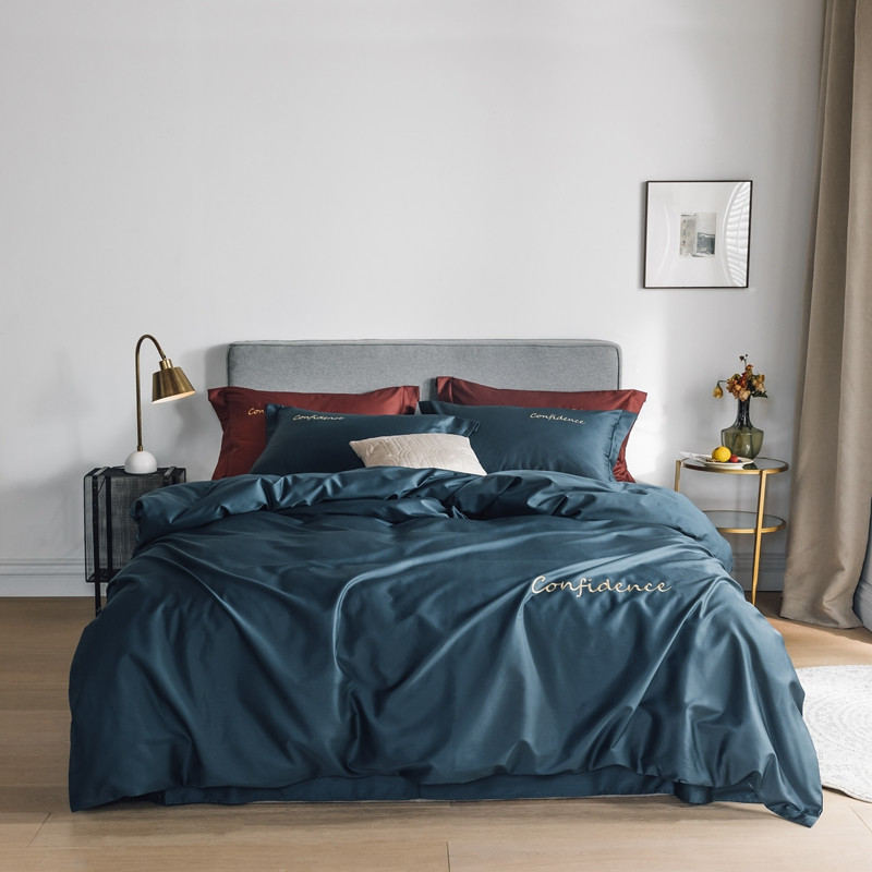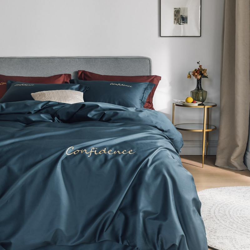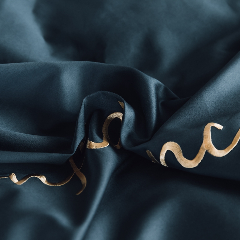 柚子家纺 100支贡缎澳棉绣花四件套图二 拾色深蓝
