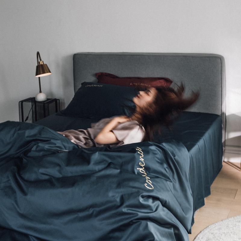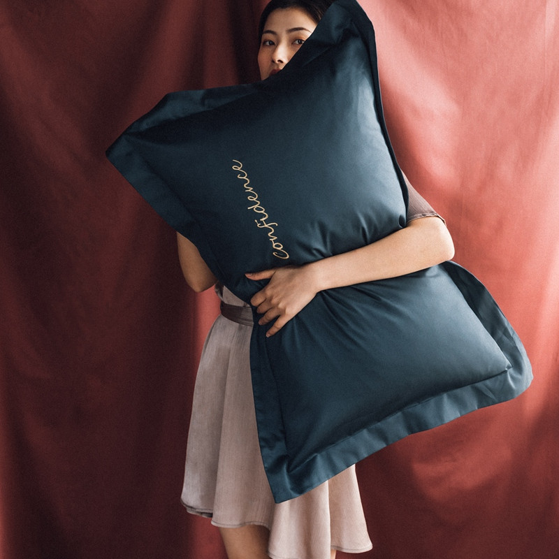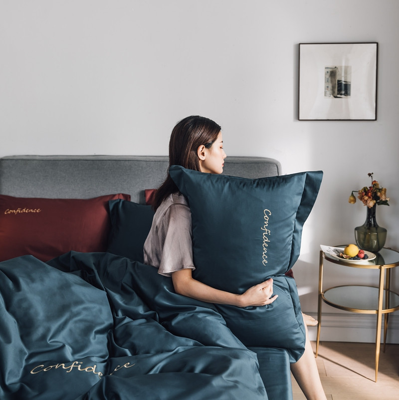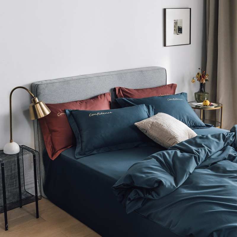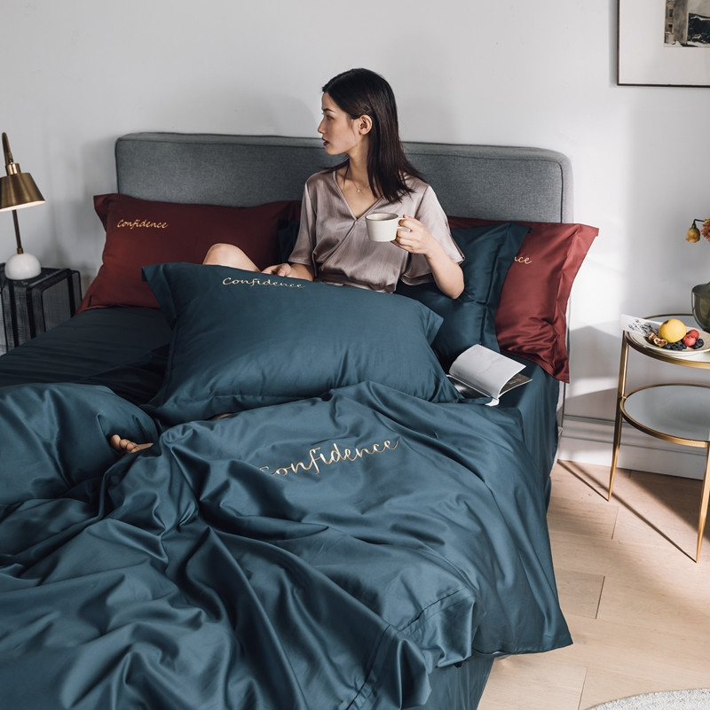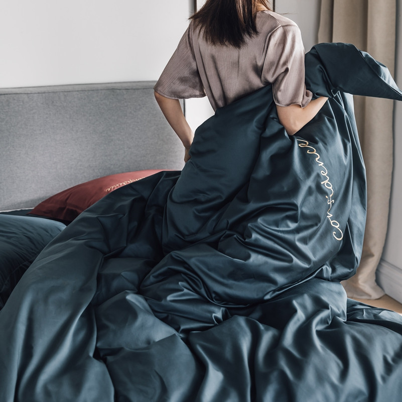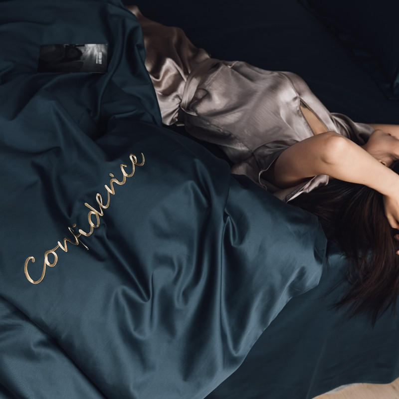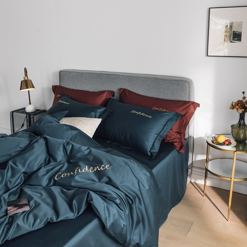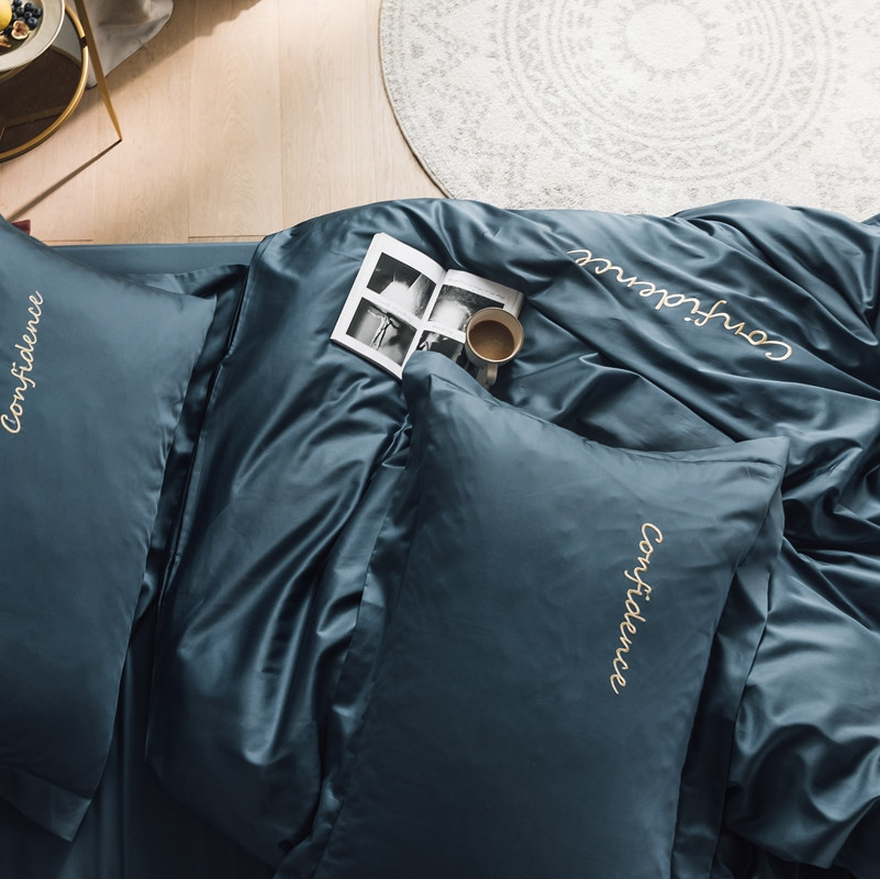 柚子家纺 100支贡缎澳棉绣花四件套图二 拾色深蓝