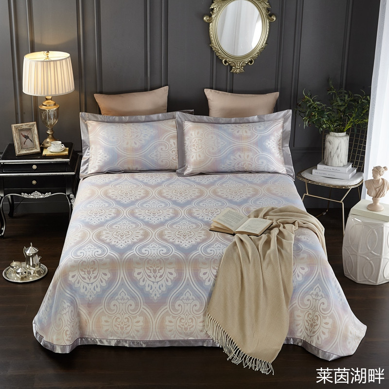 威克凯丽2023新款重磅七彩大提花纯竹纤维软凉席三件套 雅然,雅然