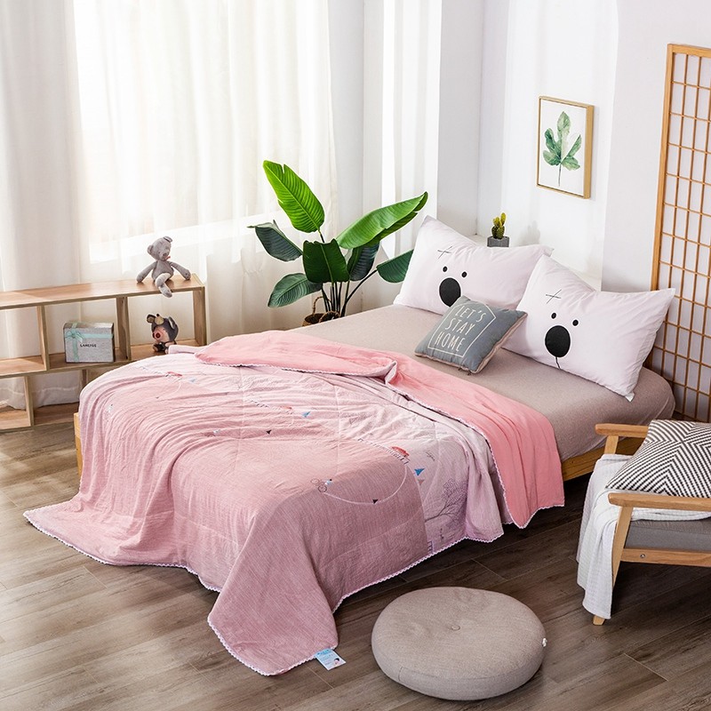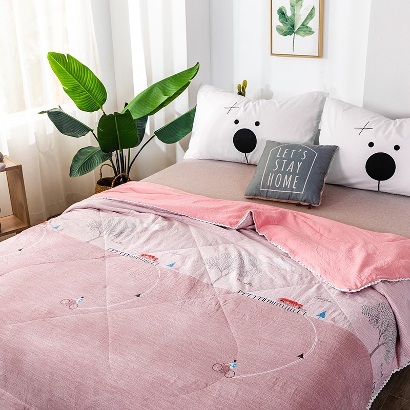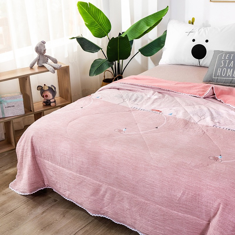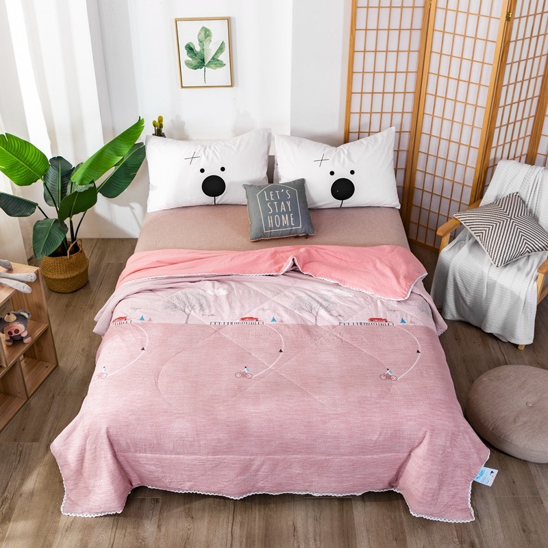 澳洲羽2024新款全棉喷气水洗印花水洗棉夏被 粉色回忆