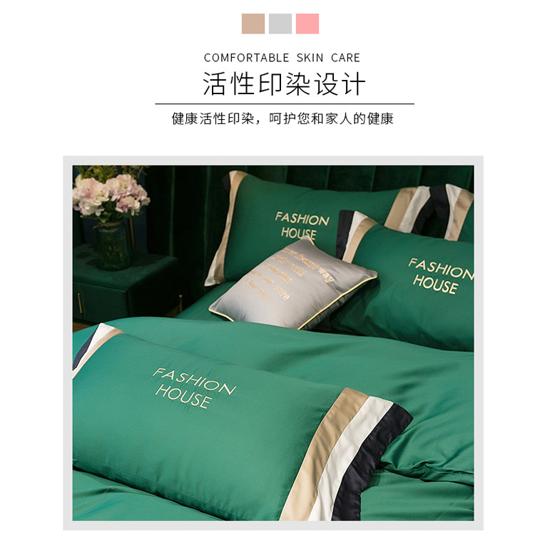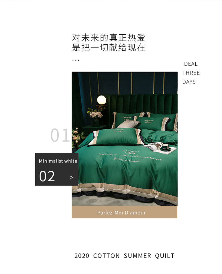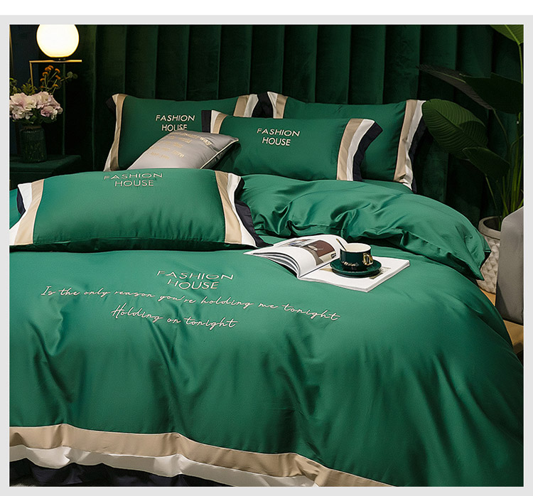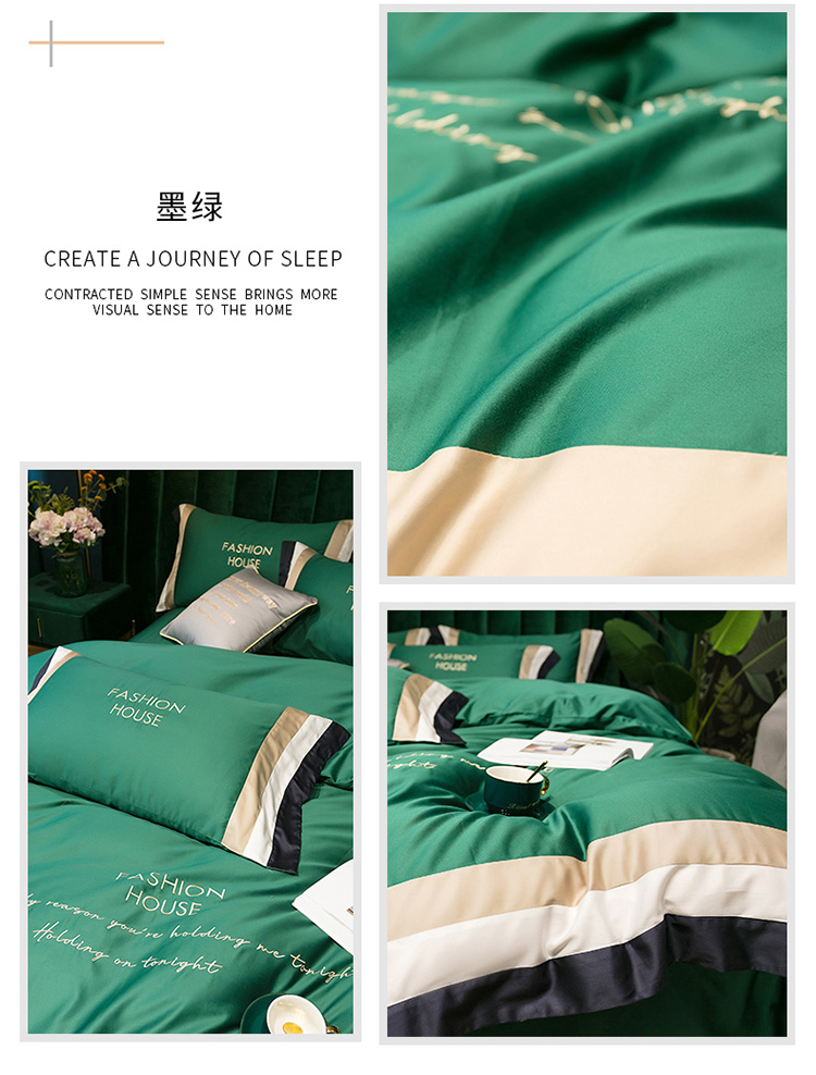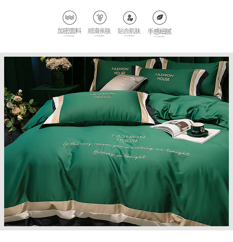商品名称:爱缦 2020新款双面60S长绒棉绣花拼接款四件套 墨绿