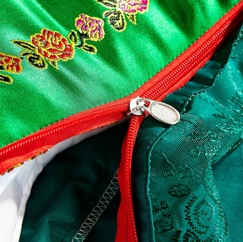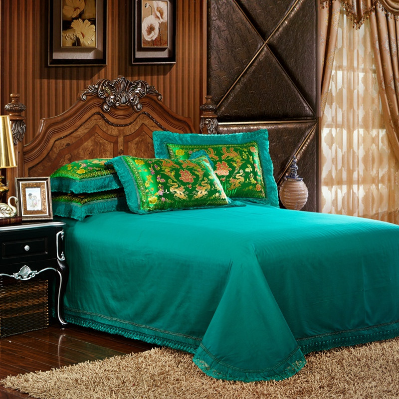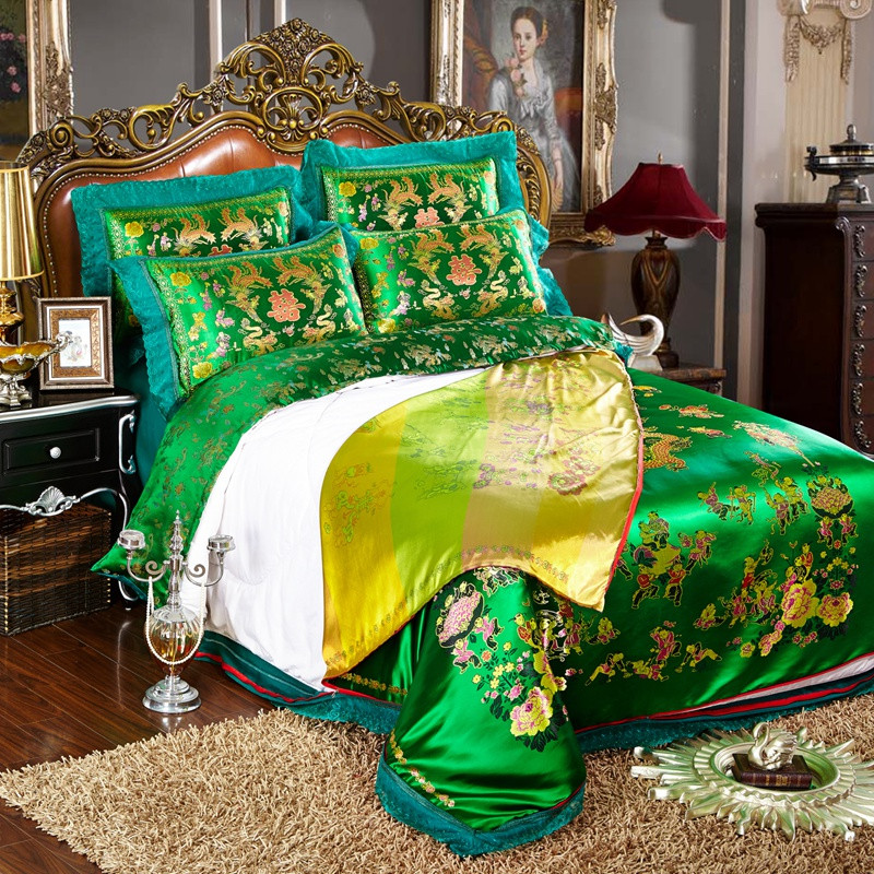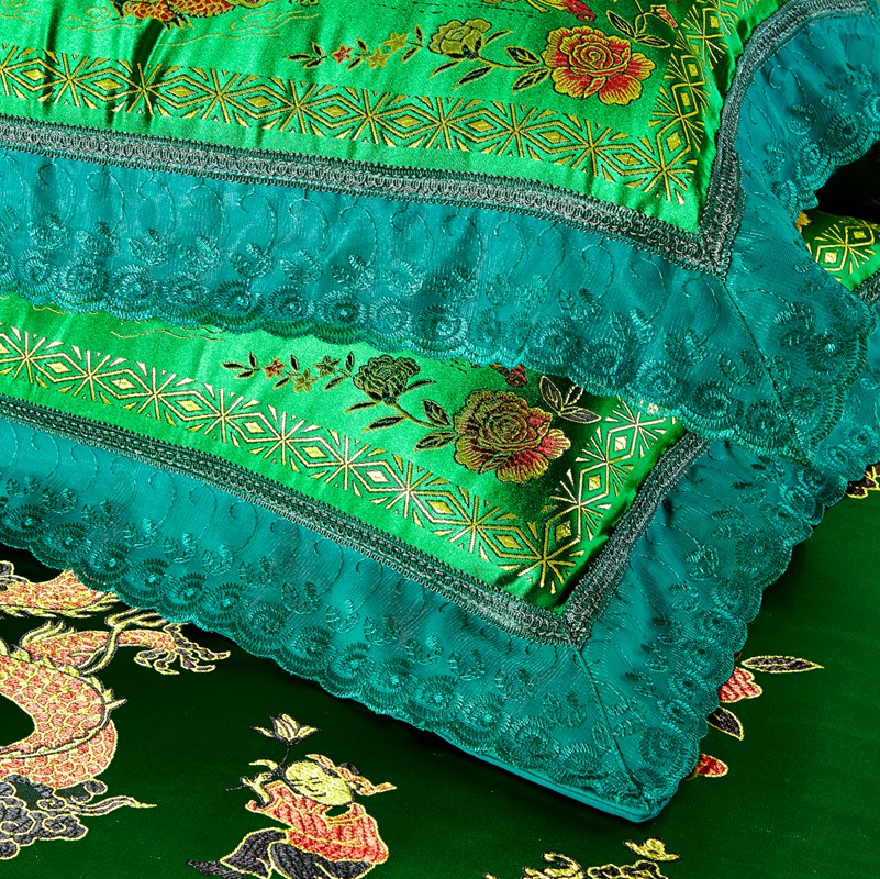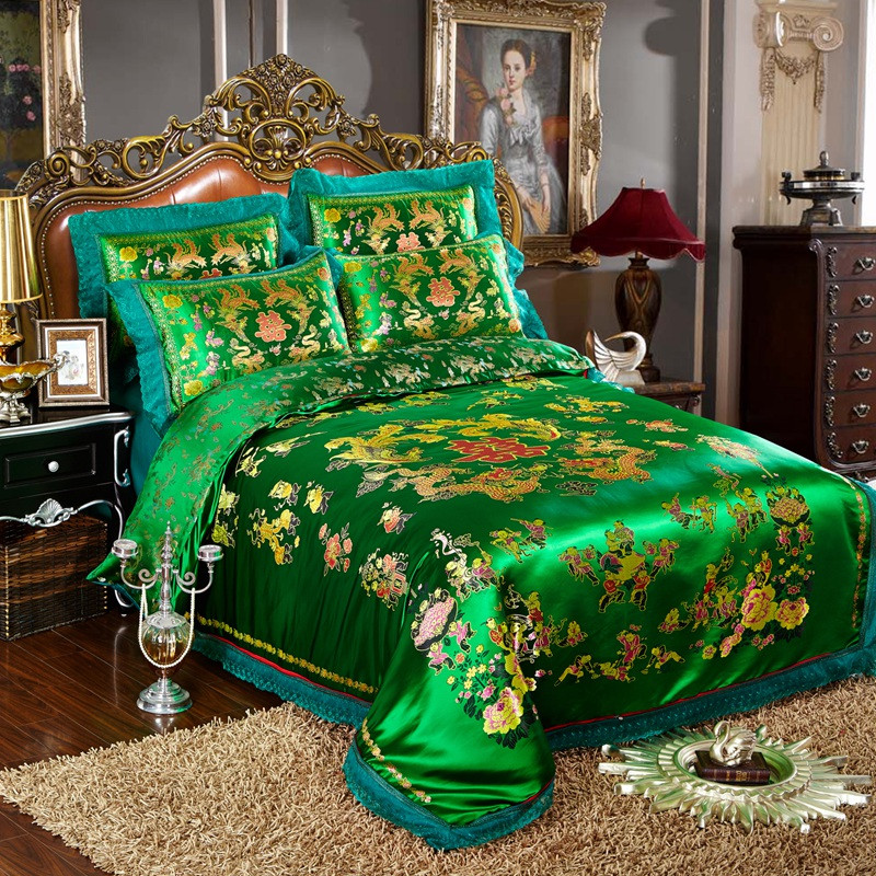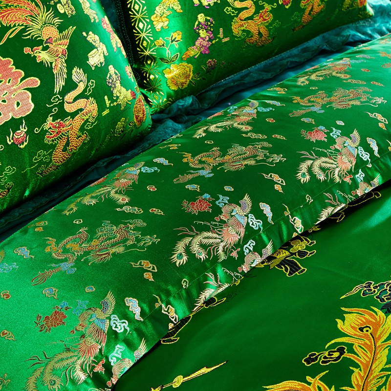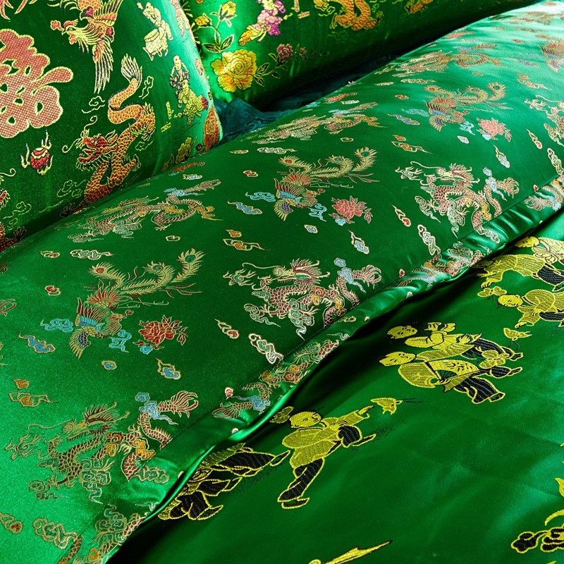 欣喜来 2020新款绸缎婚庆脱卸款四件套 龙凤百子-绿