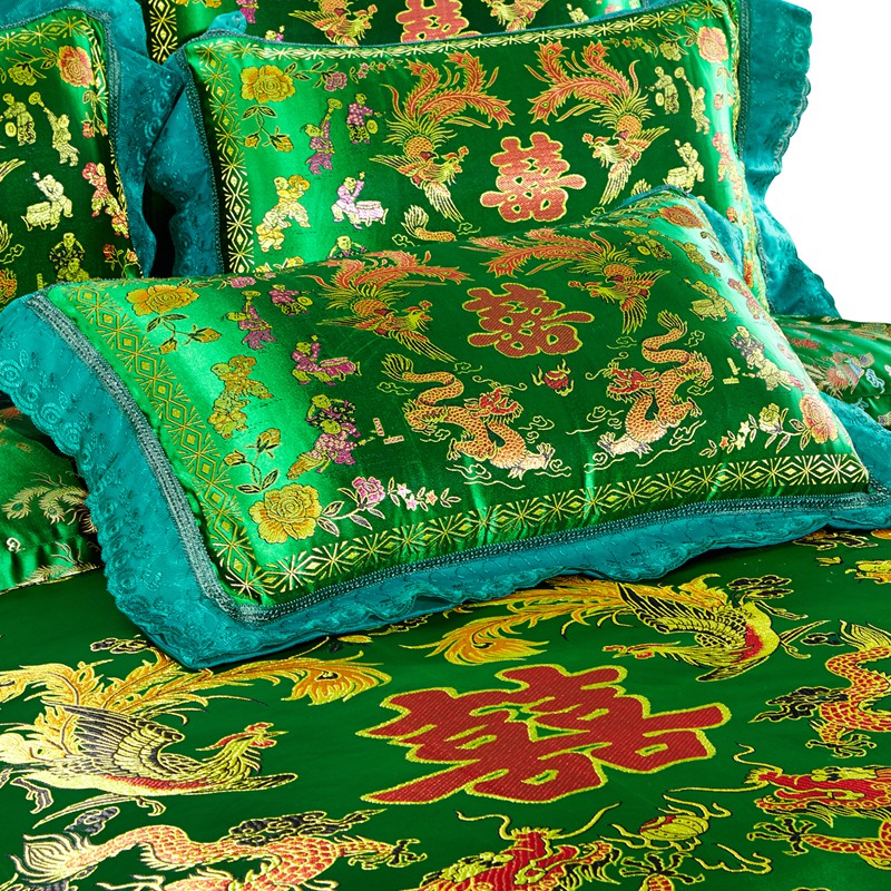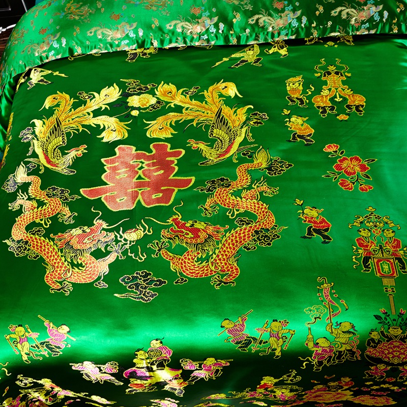 商品名称:欣喜来 2020新款绸缎婚庆脱卸款四件套 龙凤百子-绿