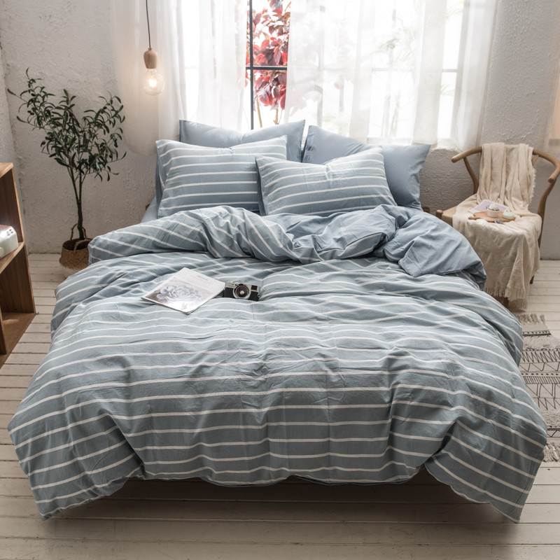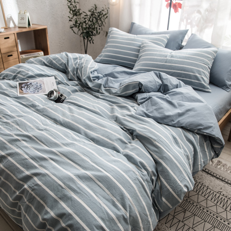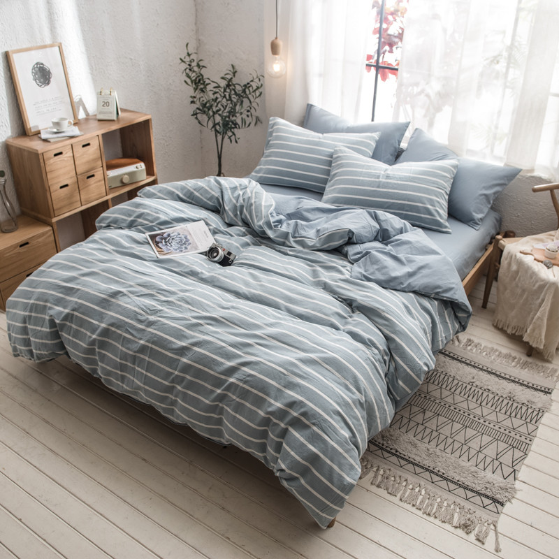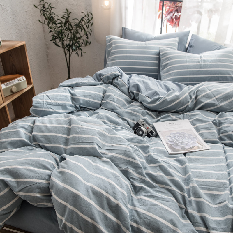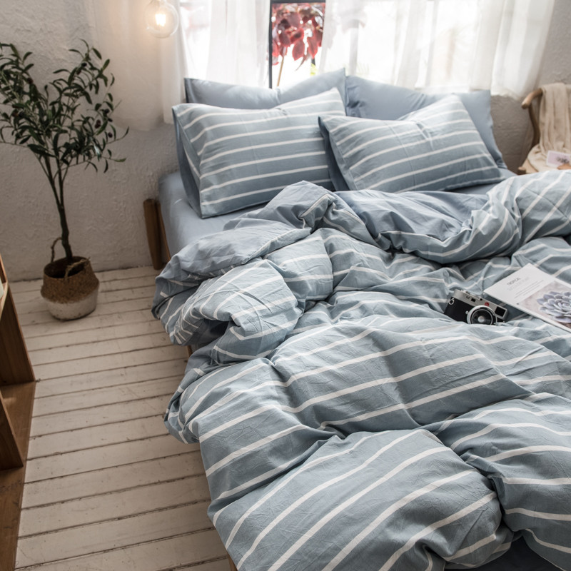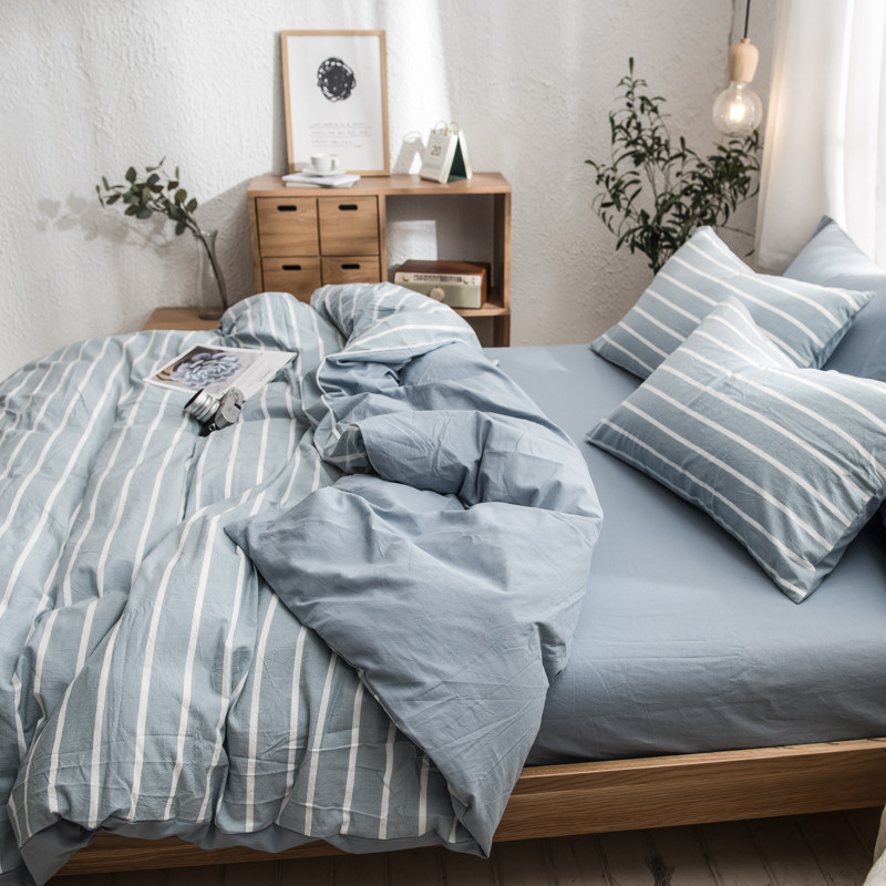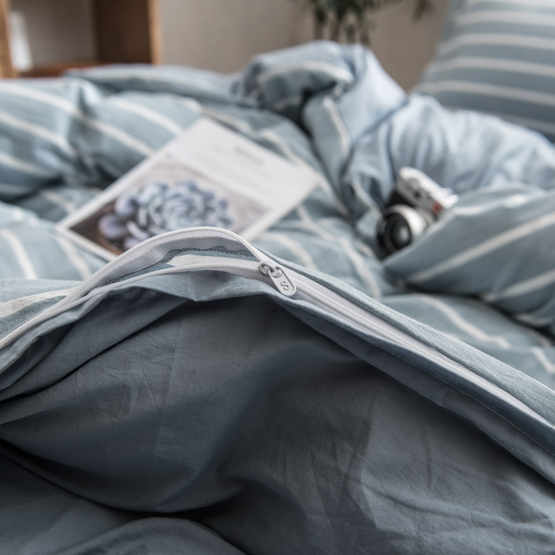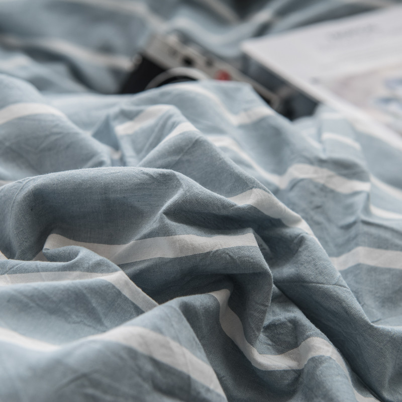商品名称:佳梦达 2020新款色织全棉水洗双拼单被套 浅蓝白条