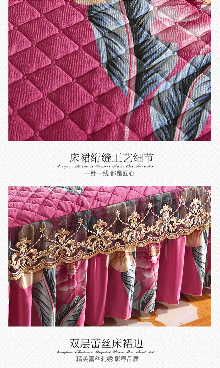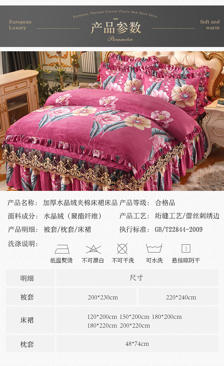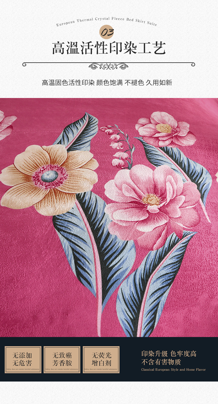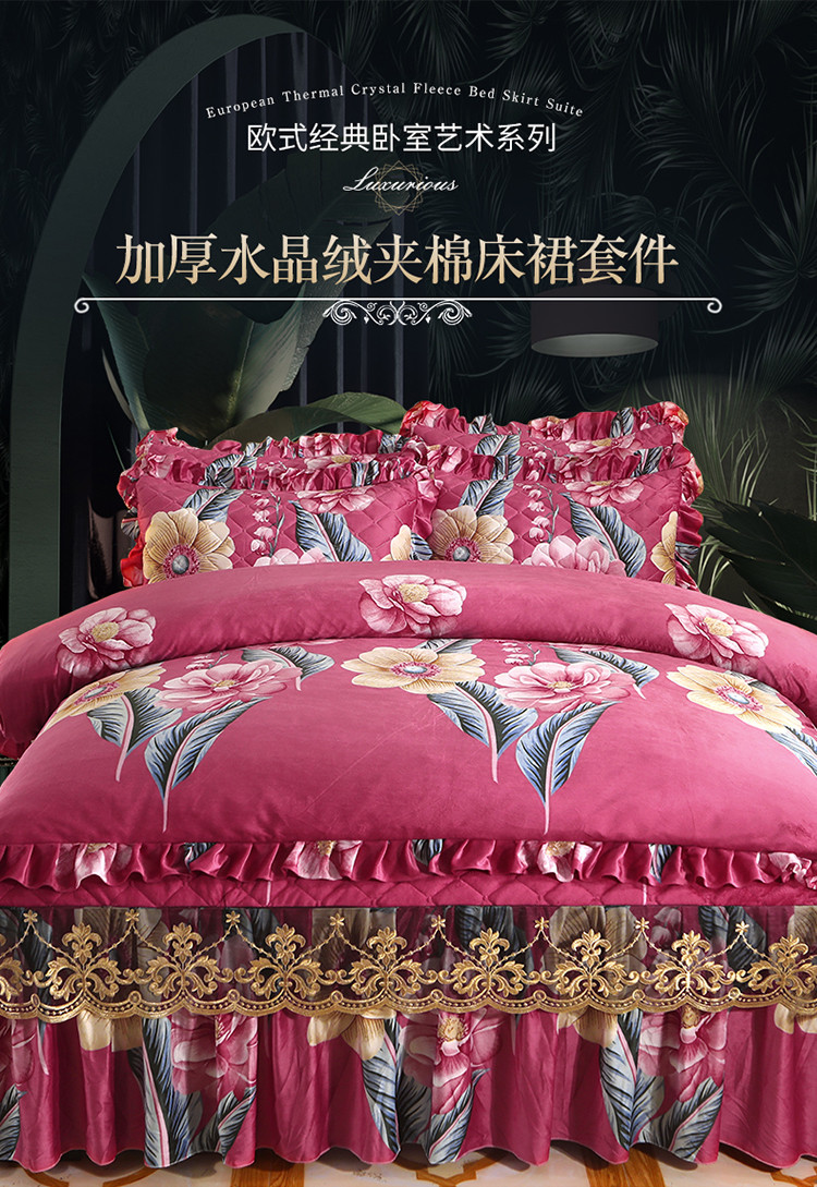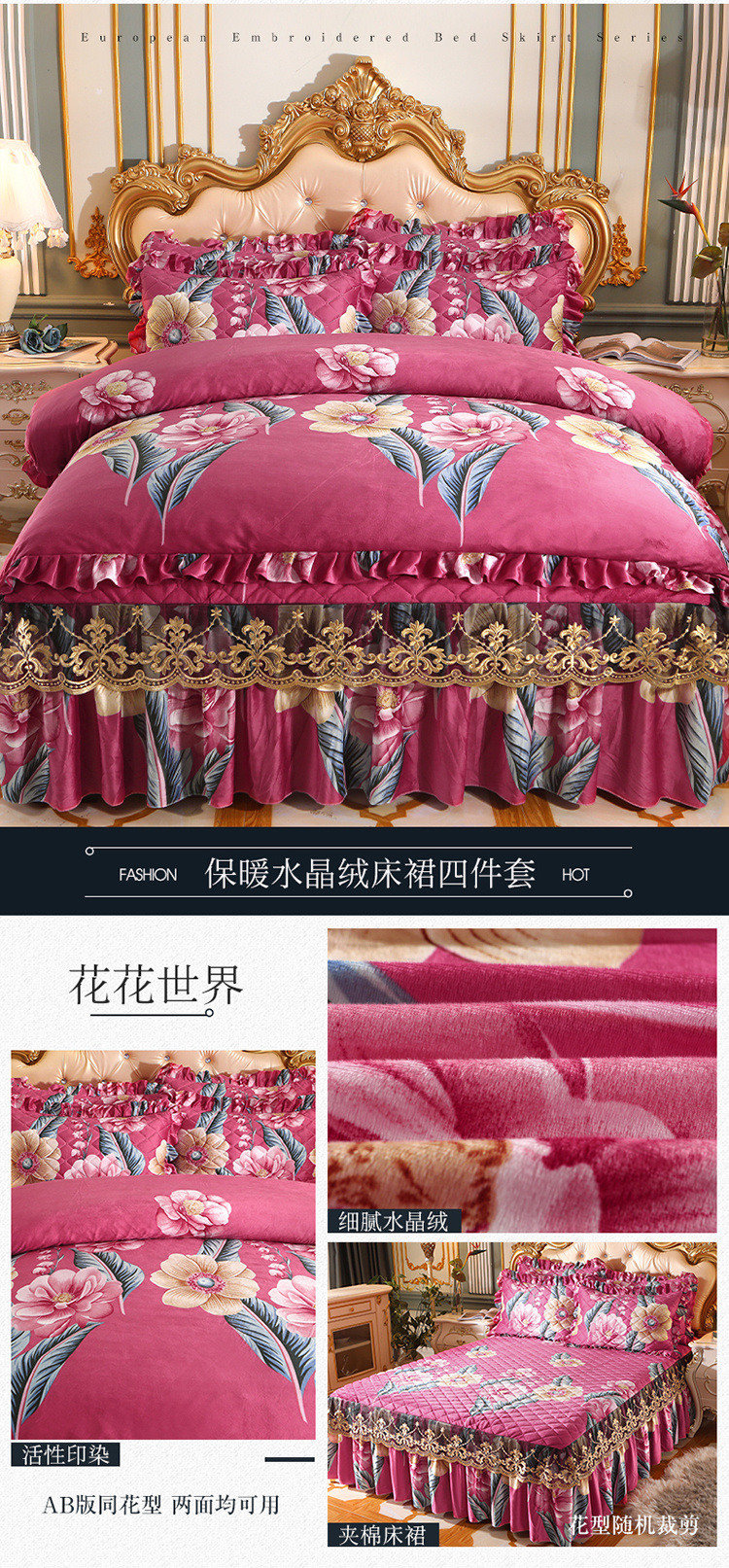 当前位置: 91家纺网 > 商品网购 > 床品套件 > 四件套 > 水晶绒四件套 > 宜凡家纺 2021新款夹棉水晶绒床裙四件套 花花世界